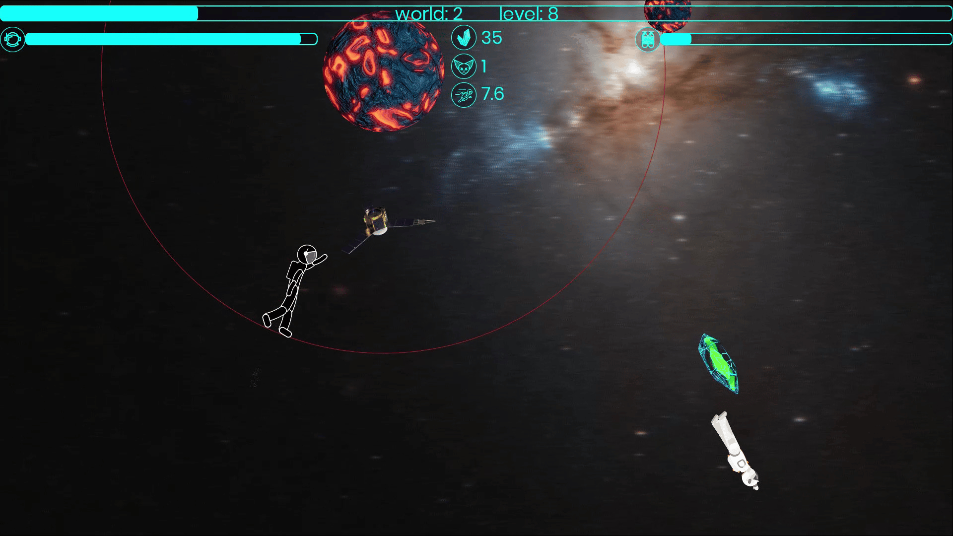 A simulator of a space suit with a jetpack in worlds with real physics, zero gravity and gravitational anomalies. Your main enemy is Newton's first law.