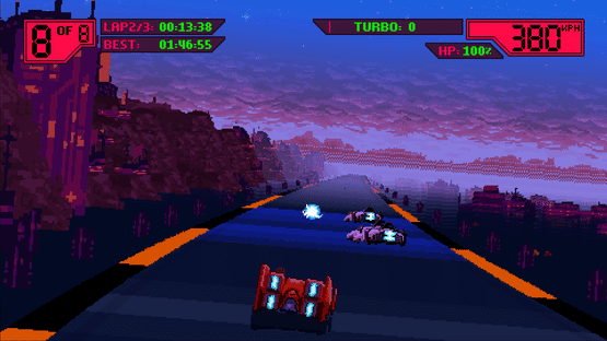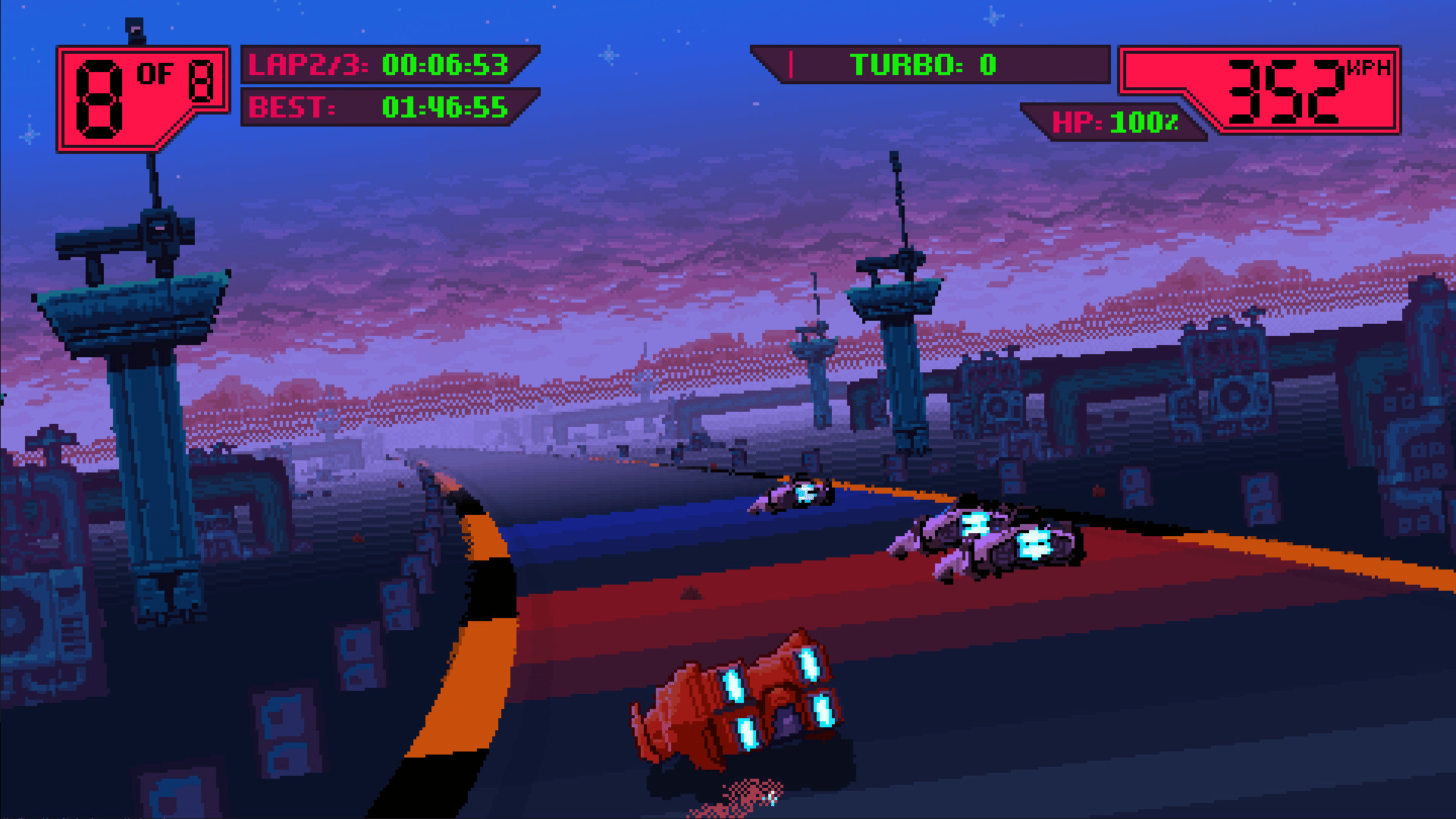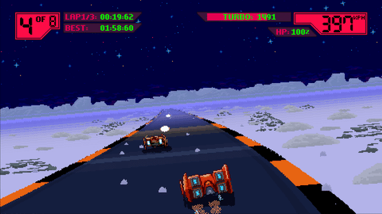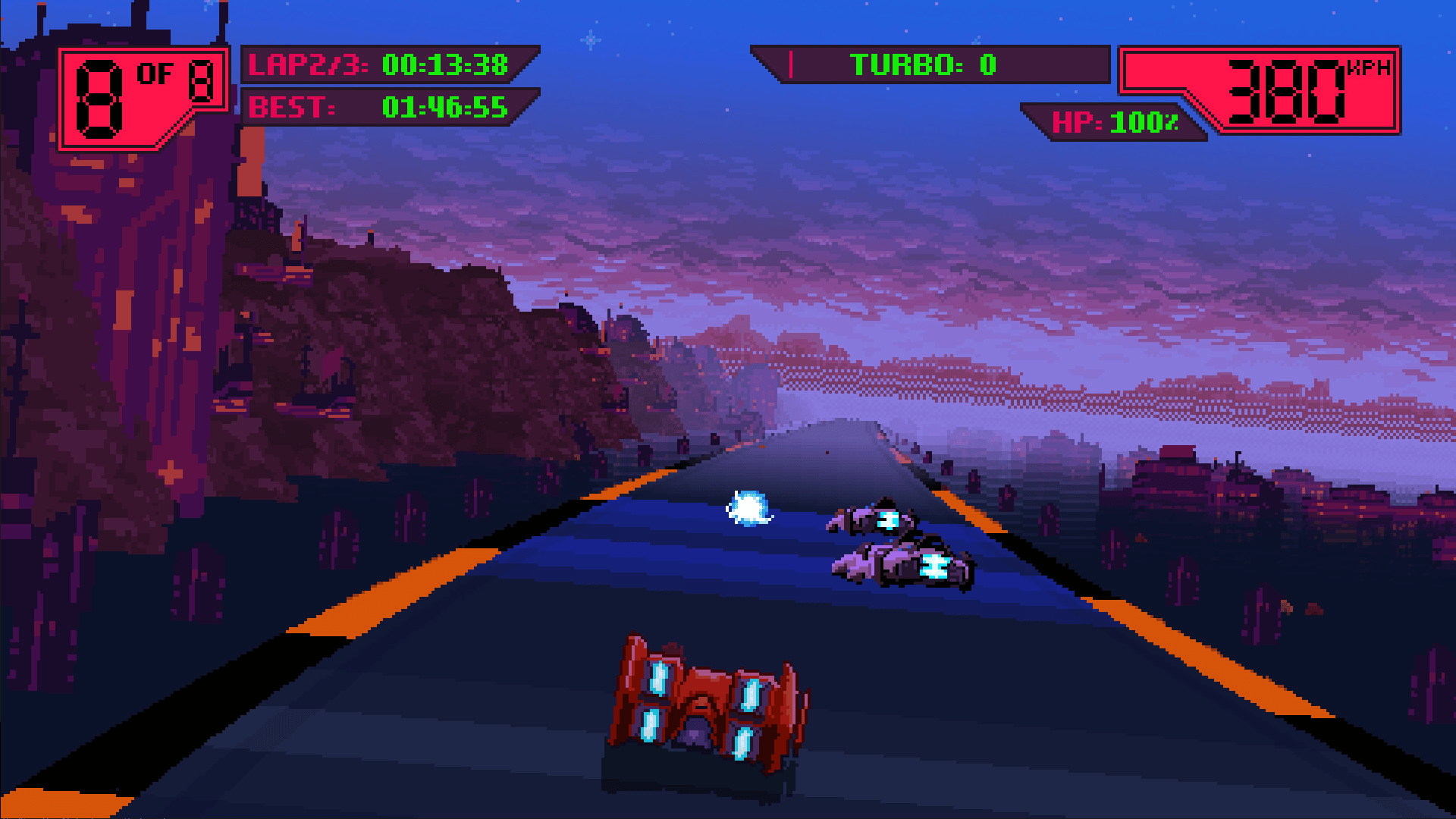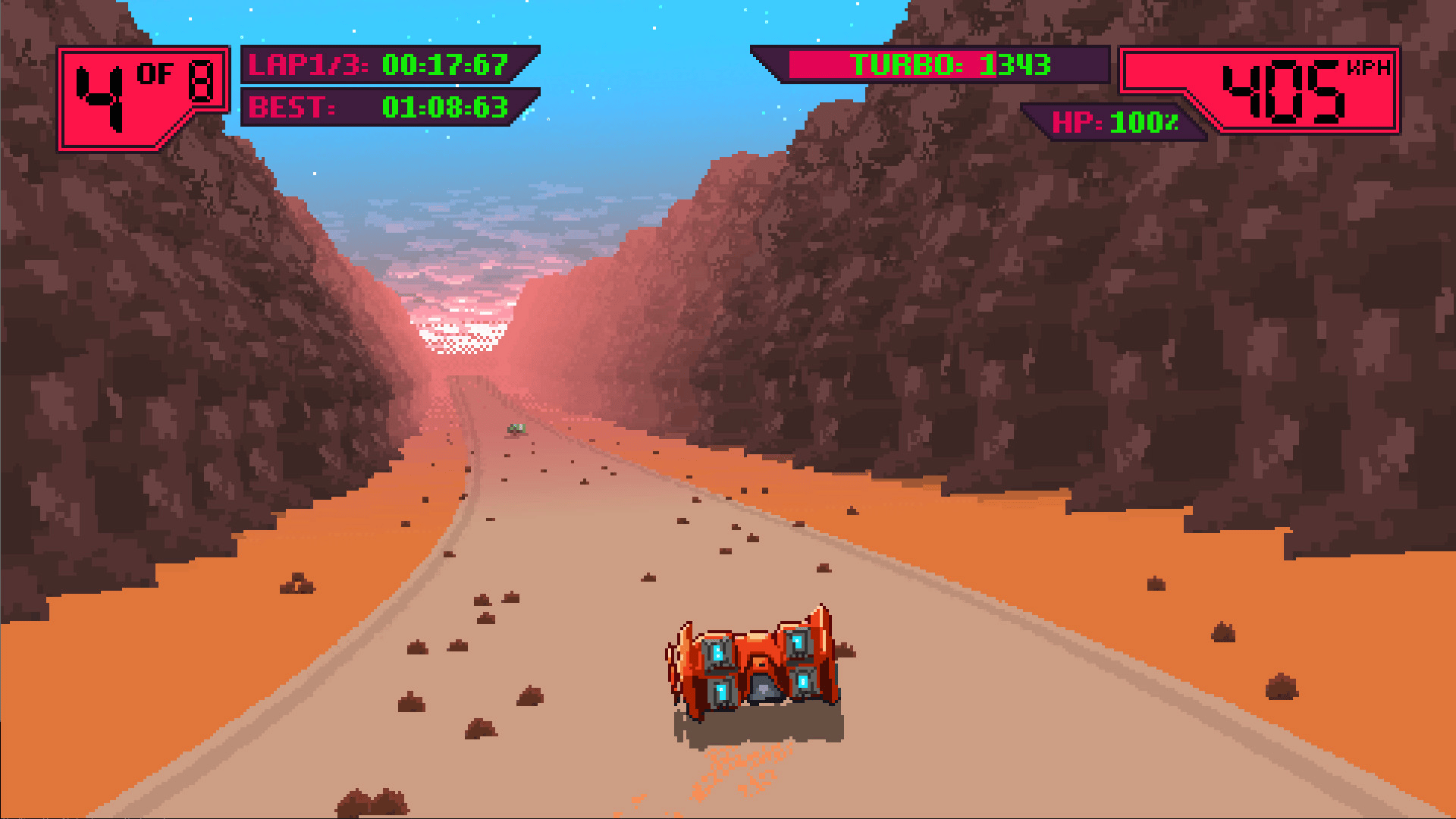 Fast-paced retro-futuristic racing on Mars rendered in low def pseudo 3D. A heartfelt tribute to the racing games of the early 90s.