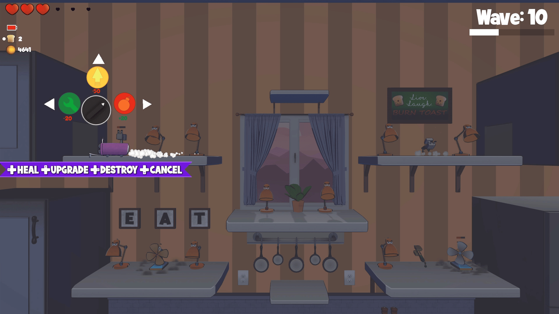 Shoot, dash, and smash enemies in this fast-paced tower defense platformer. Build turrets to aid in your defenses and find the deadliest combination. Protect the toaster -- at all costs!