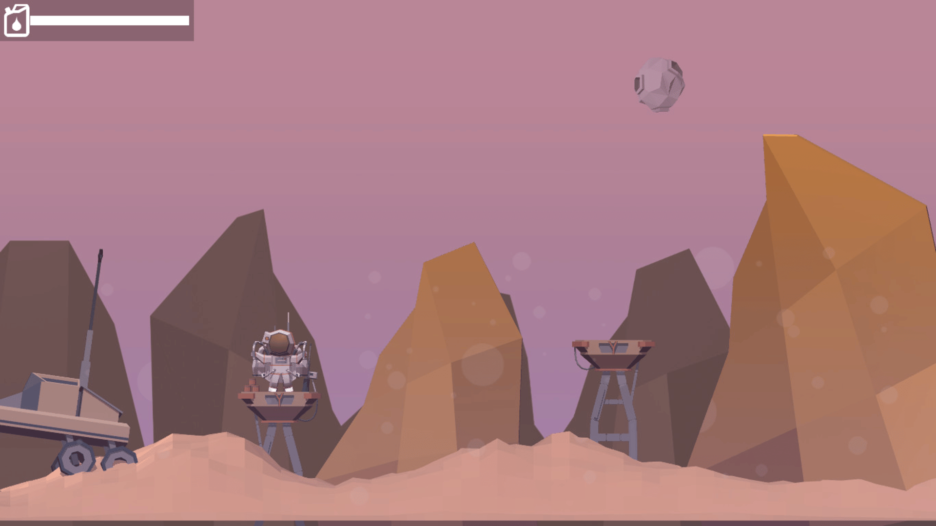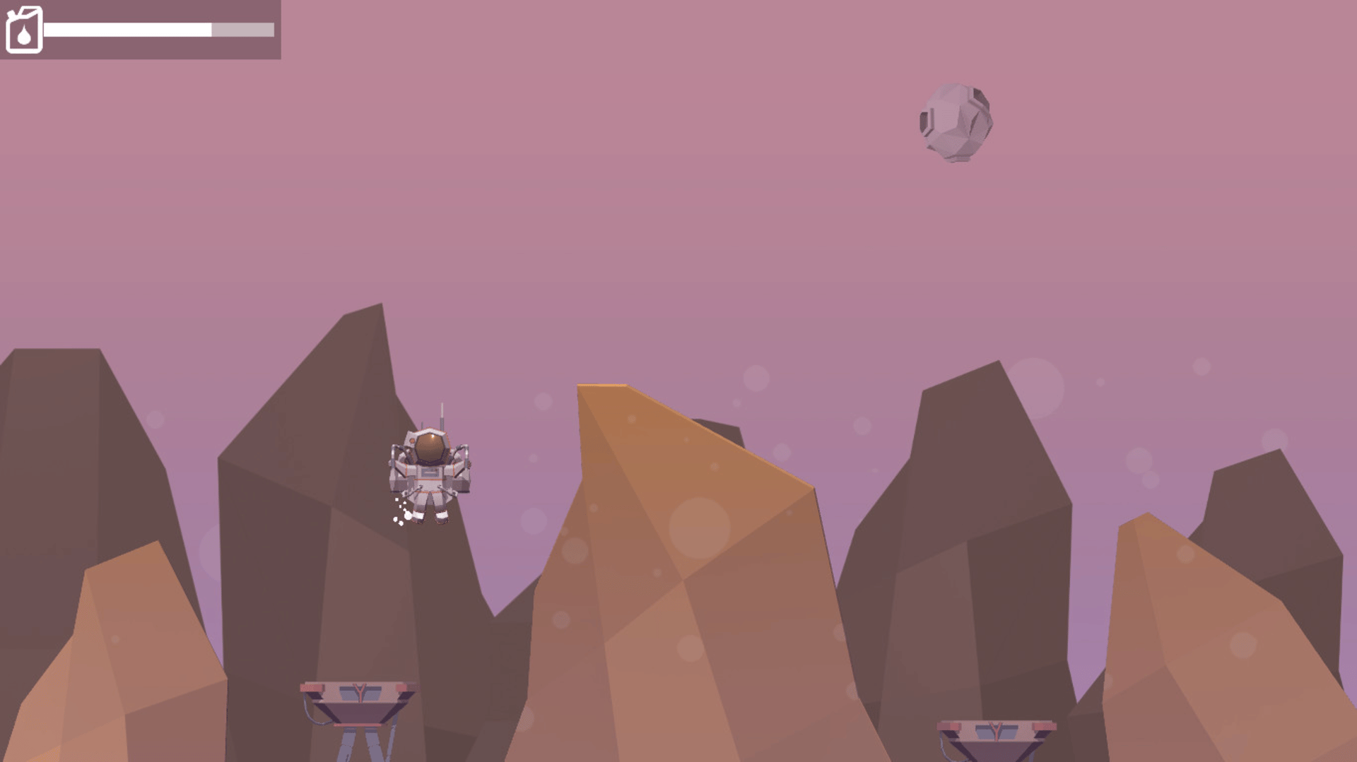 In your hands is given control of a would-be astronaut who is looking for a way to get out of the ill-fated red planet. Use your jetpack to jump from platform to platform, and not to forget that the jetpack's fuel reserves are limited, so be careful and economical during the flight!