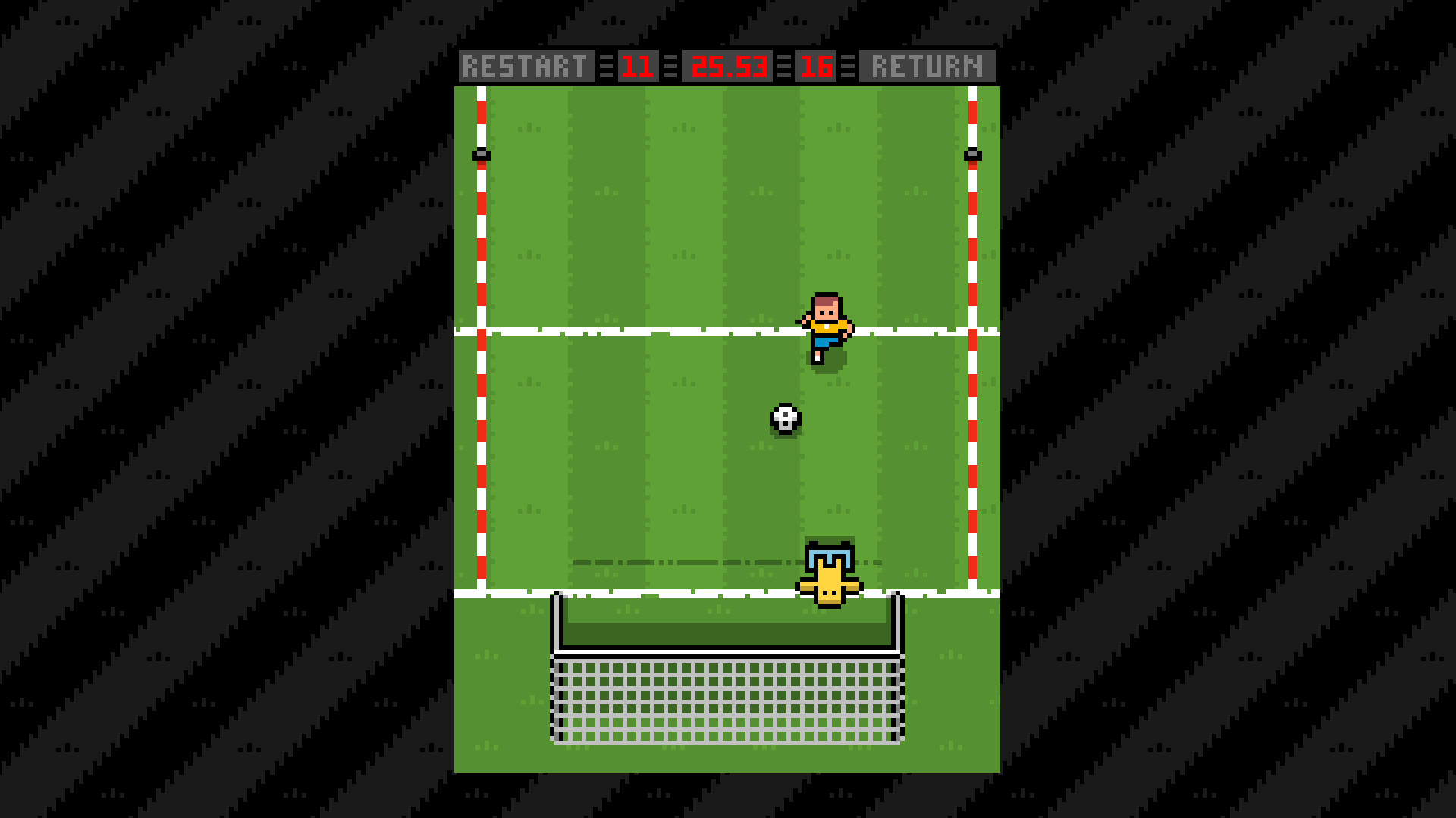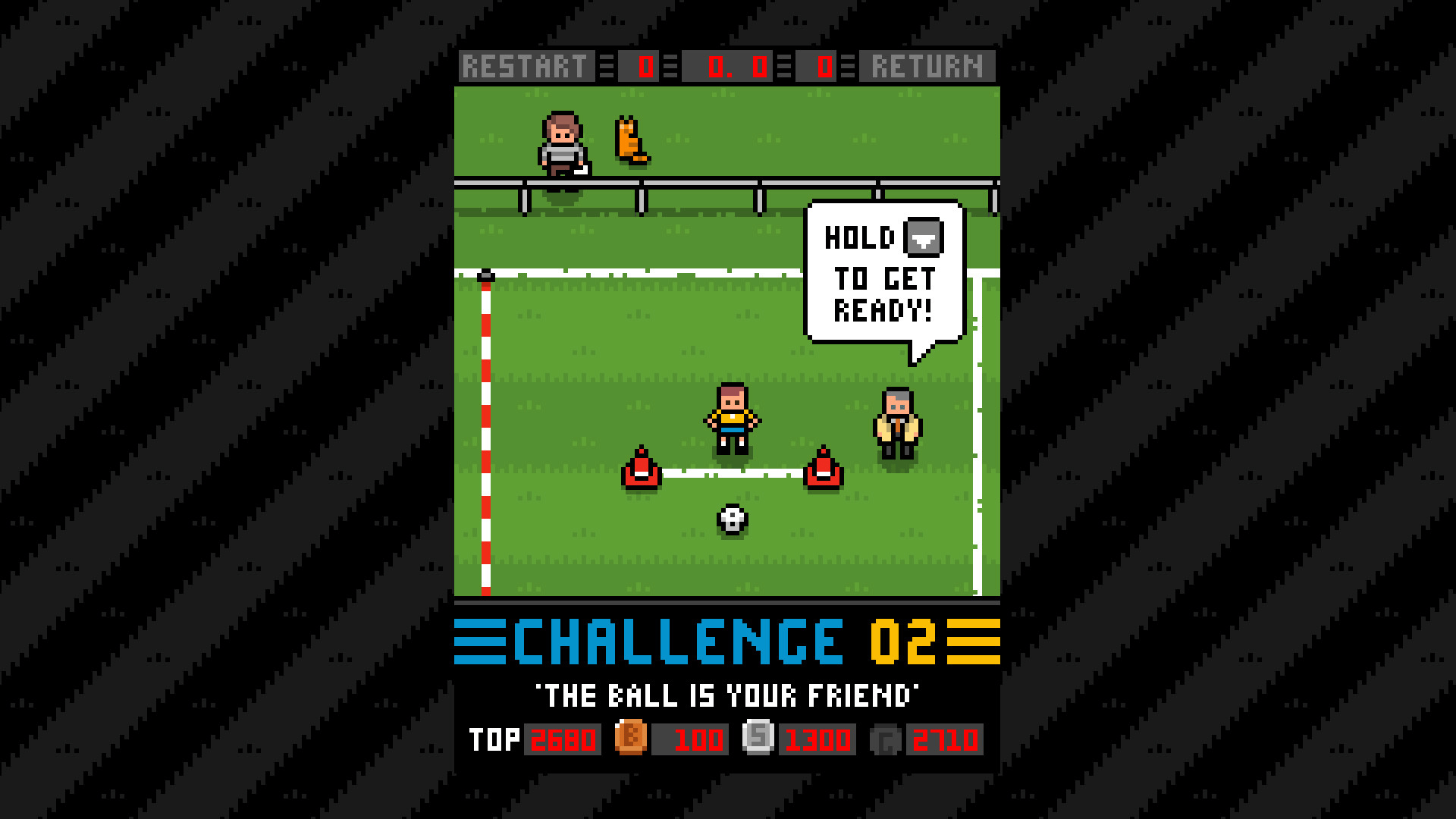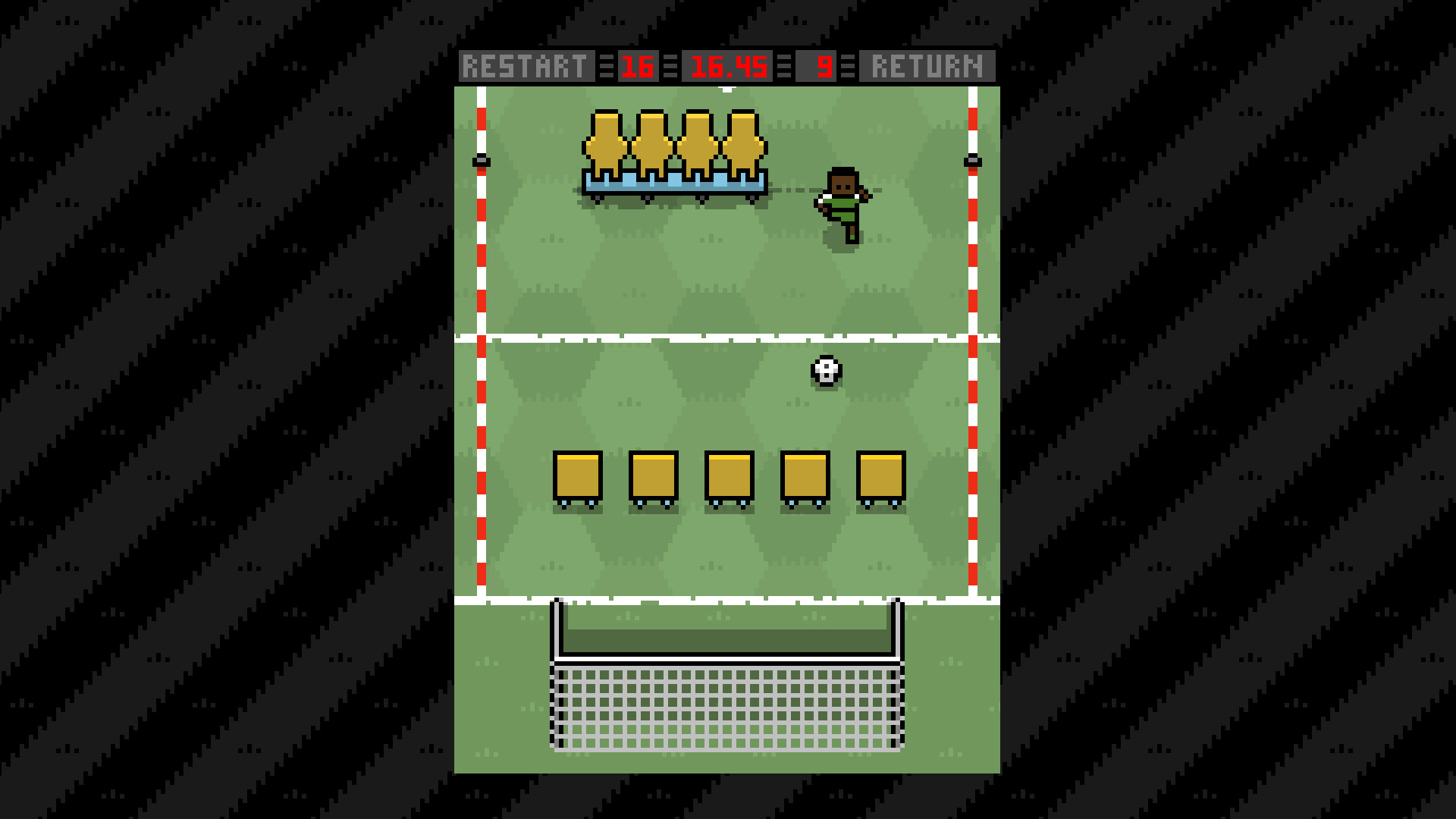 Dribble past all the obstacles in this skill-based soccer game.