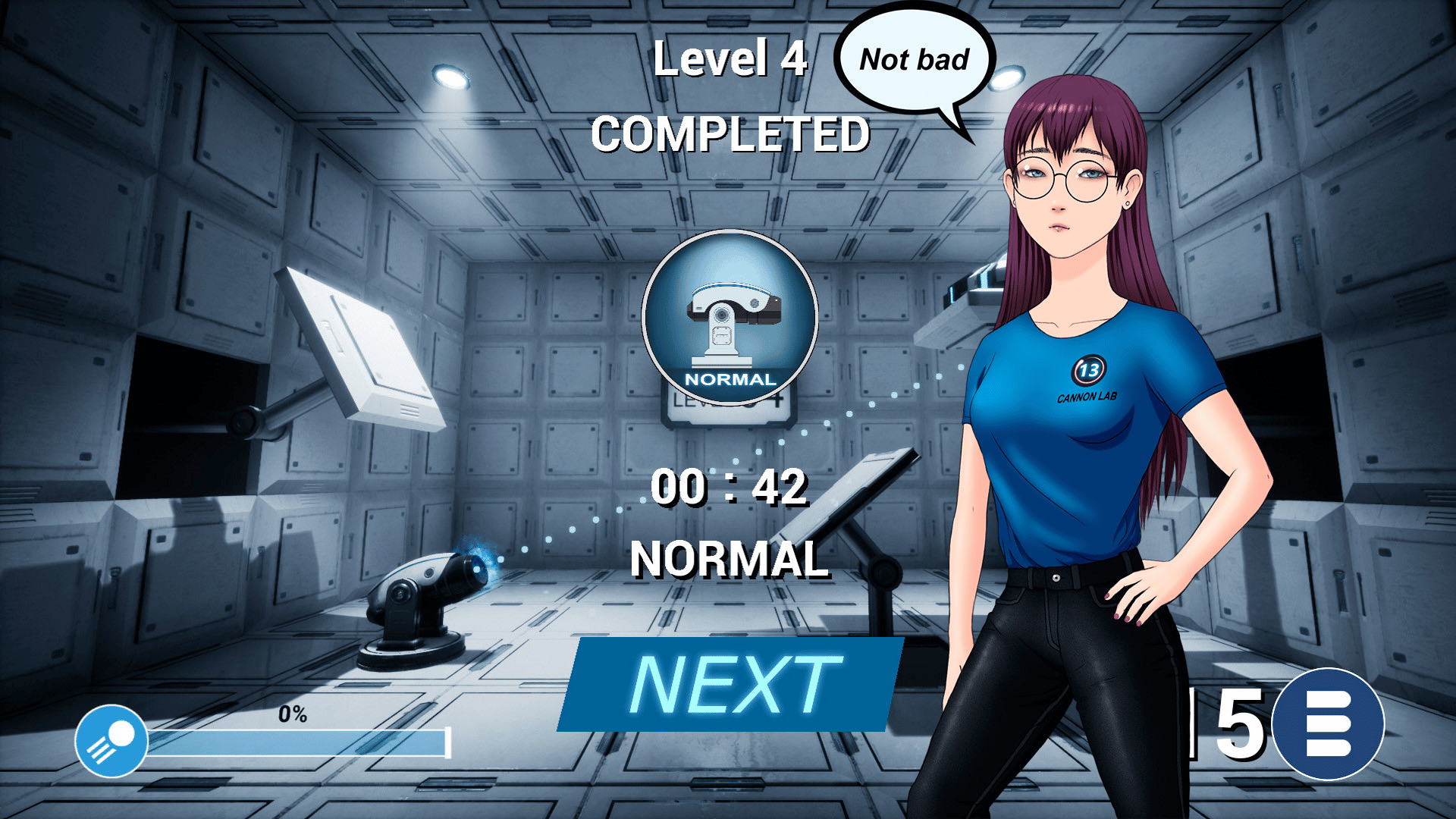 Cannon lab 13 is a laboratory where experiments are carried out to study the behavior of an ultra-bouncing ball after a shot from a special cannon. The game is a puzzle of different levels, where the player has to use logical thinking to get into the hole without spending all attempts to shoot.