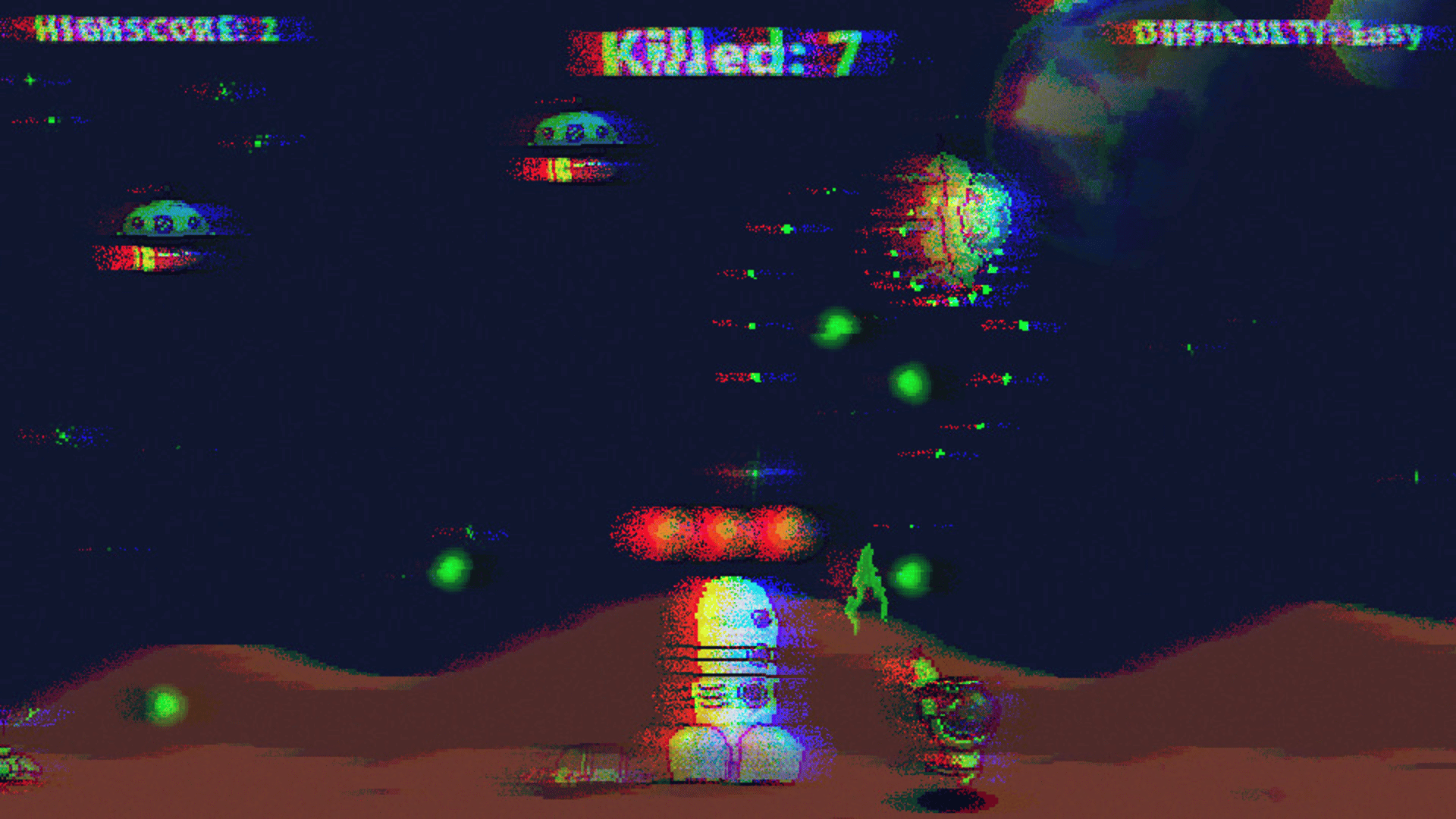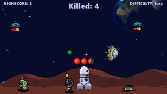 Mars Accident is a 2d shooter where the player dodges a falling and flying saucer. The only thing that raises it is the laser energy bunches that the hero releases and which destroy the aliens. The goal of the game is to fight off the alien attack and protect your spaceship from the attack.