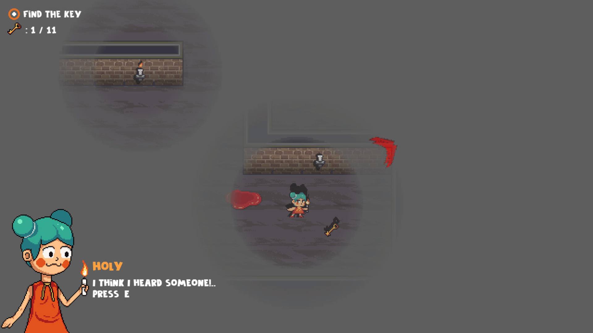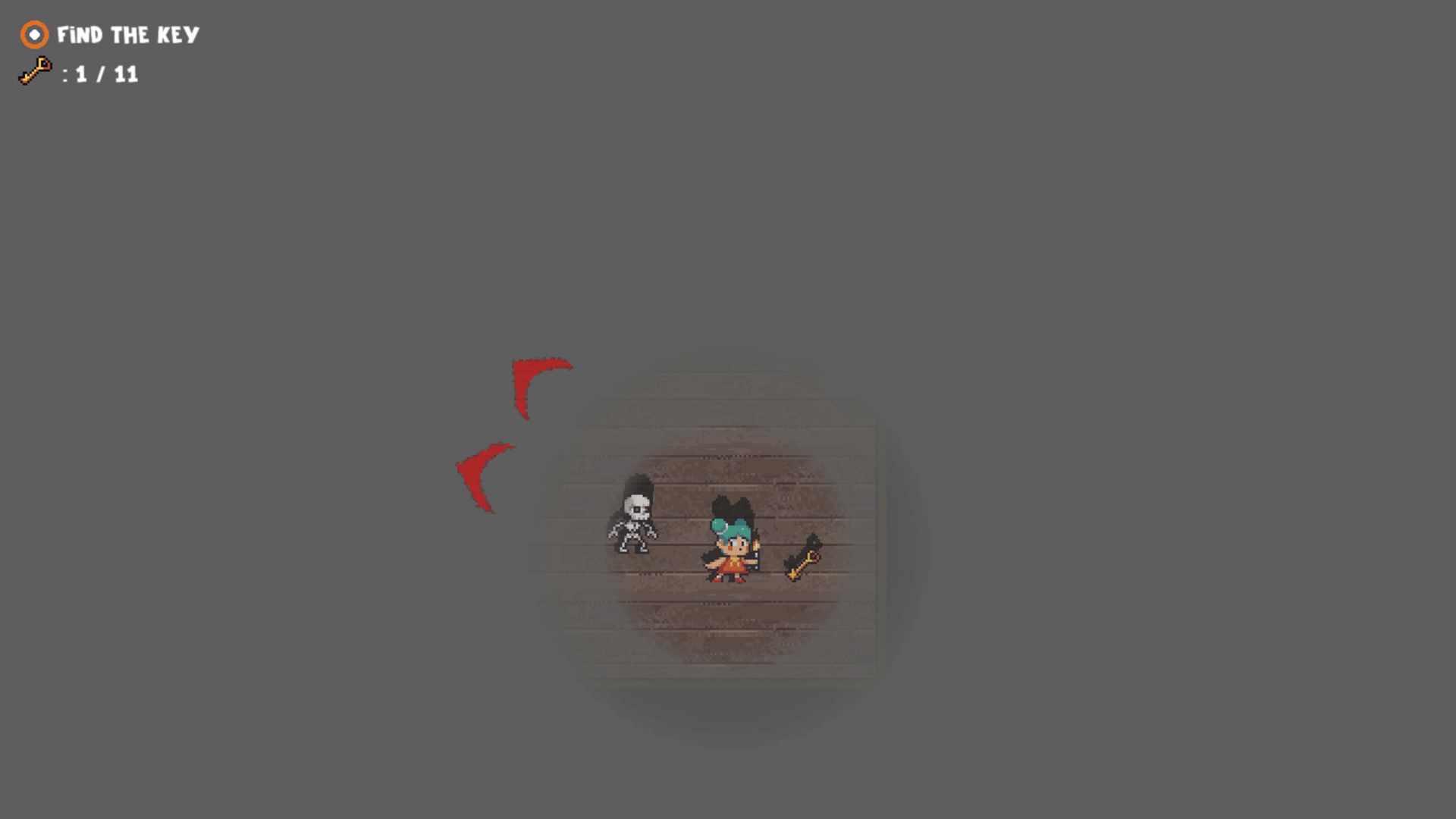 Night Monsters - A top down view game with Horror elements, where the player, running away from monsters around, collects keys scattered around the room, with a limited view from a burning candle, which after a while will surely go out.
