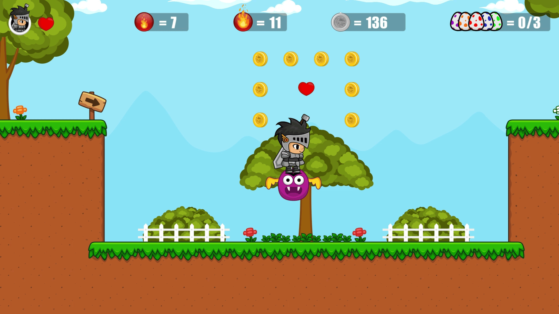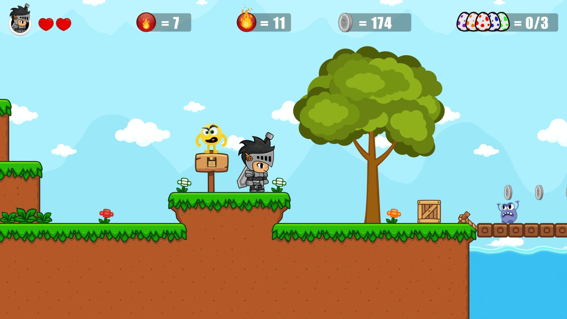A hero who talks to the player in a comical way about his actions in the game, adventure in classic 2D platform style, are 5 worlds with different and challenging characteristics. Join the Fire Boy and help him recover all the dinosaur eggs that were stolen by the little monsters.