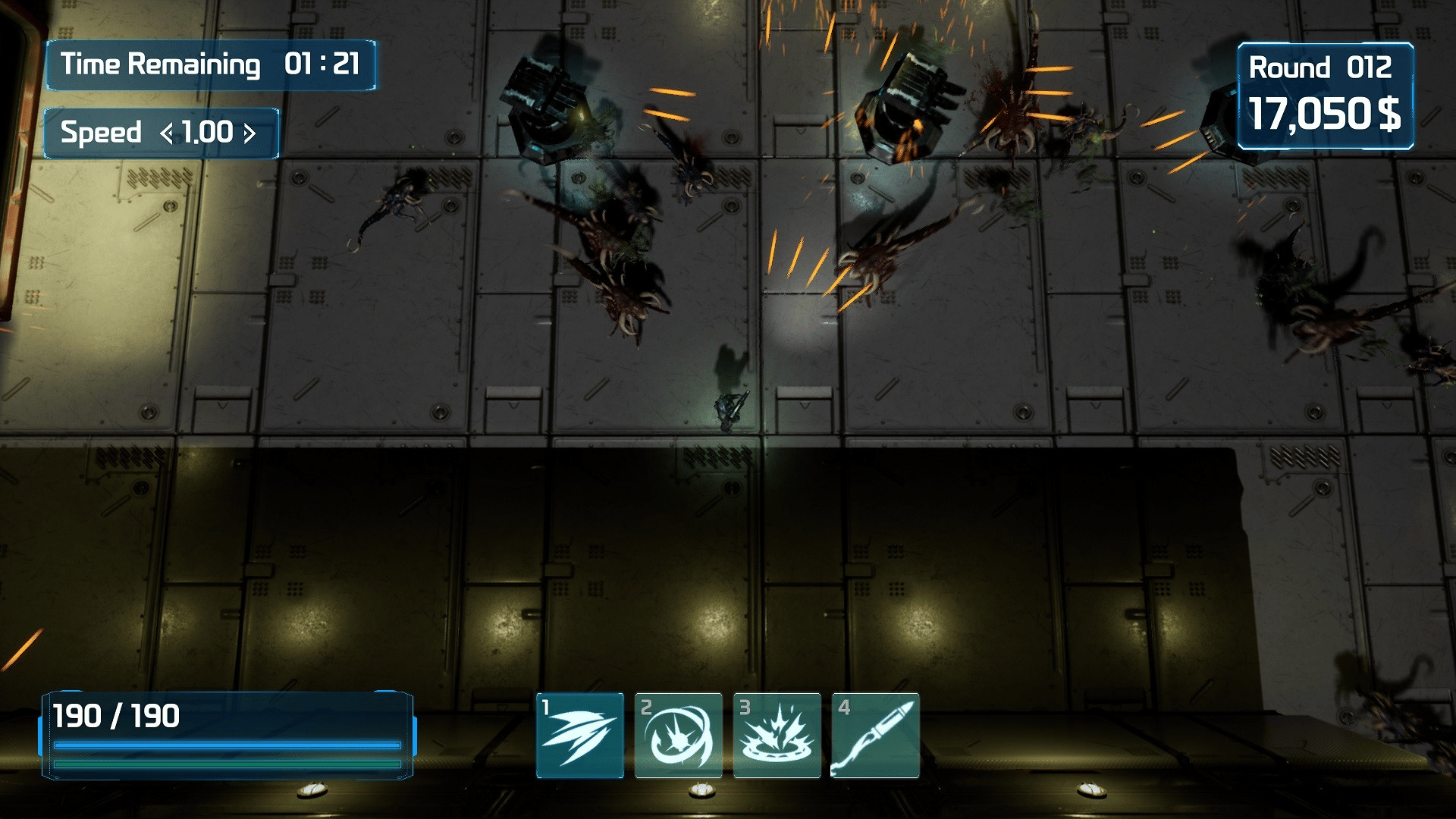 "Just Defense" is a simple Topdown view defense game.Upgrade your weapons, build turrets and kill enemies.