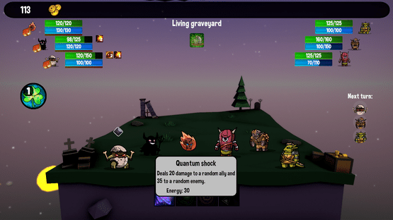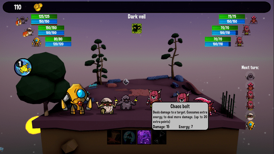Tiny Strife is a roguelike turn-based combat game. Control up to three heroes as you advance through the debris of a planet destroyed by Shub'Guth and confront his minions.