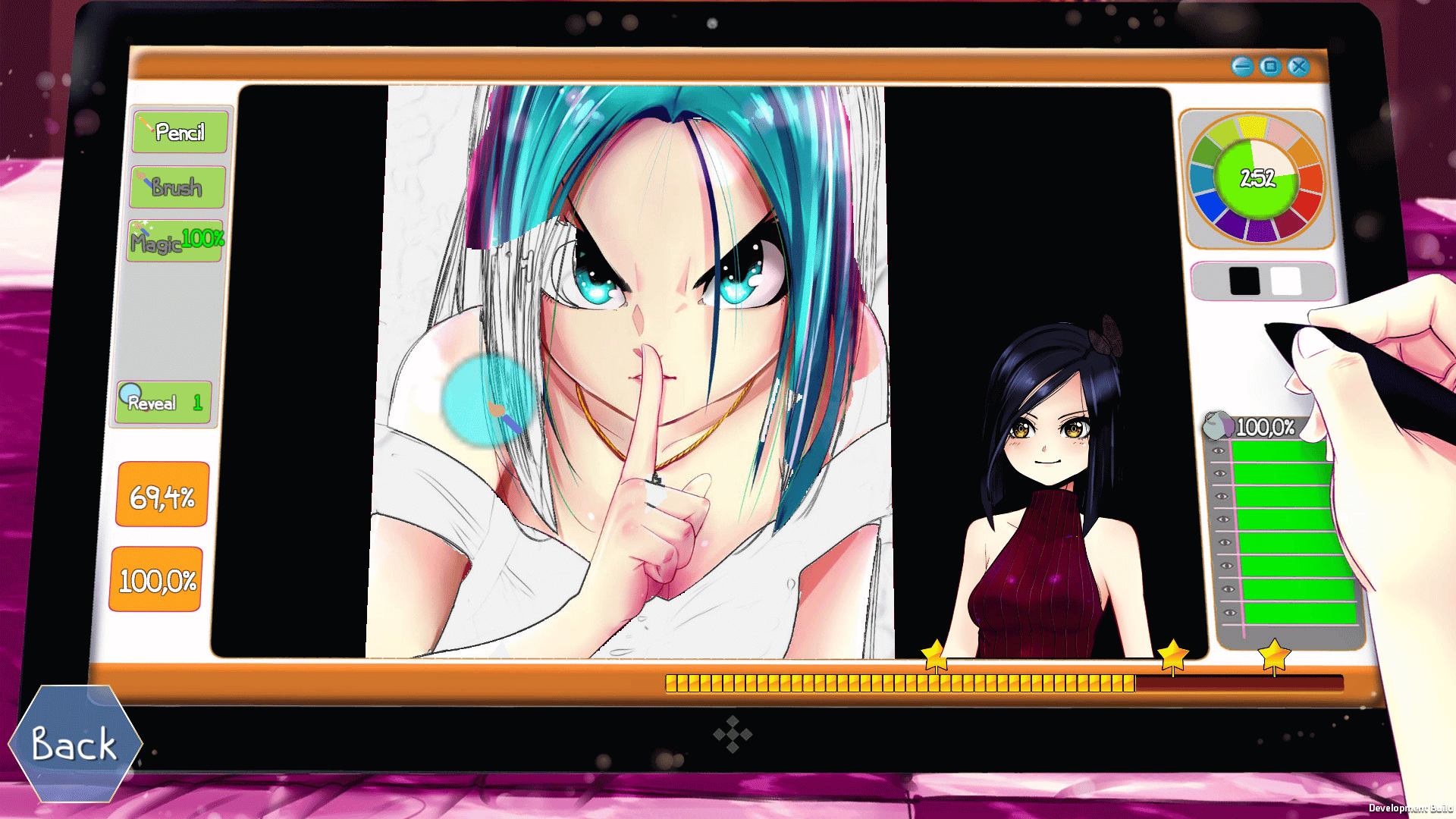 Tired of working alone? This time 4 lovely girls are here to assist you in your journey to become the best Anime Artist! Draw, Color, Collect art while unlocking tons of dresses and hair styles! Fully personalize your helpers and, this time, don't forget to make them fall in love!