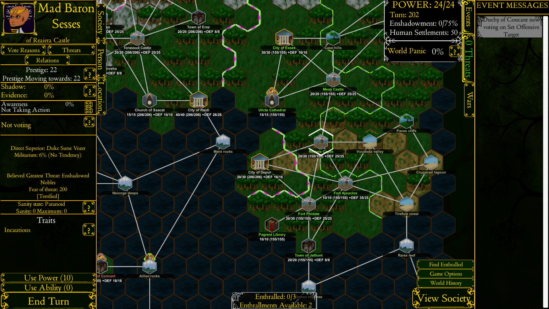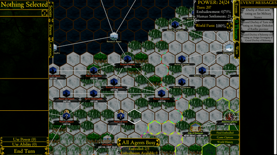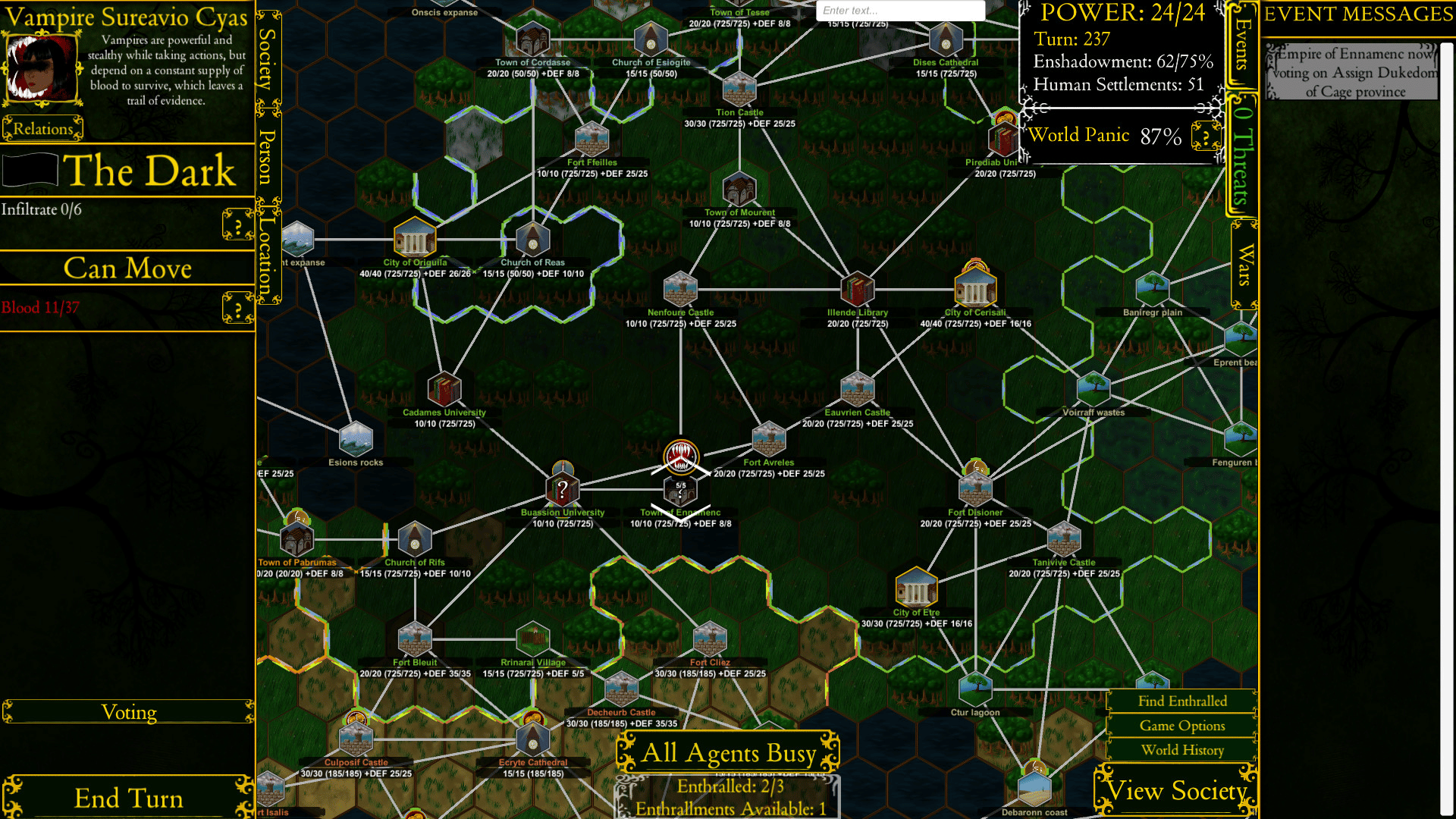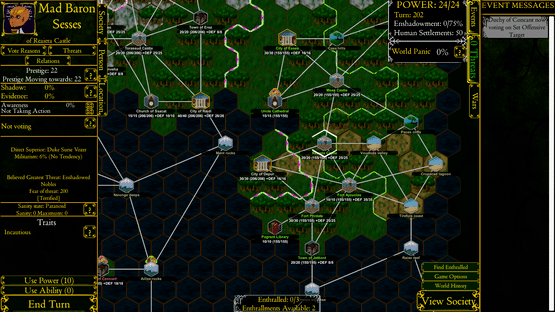 An apocalyptic grand strategy game, in which you take the role of the forces of darkness, trying to bring an end to a fantasy world. Complete with complex internal politics by NPC factions and wide ranges of strategies and types of doom to choose between.
