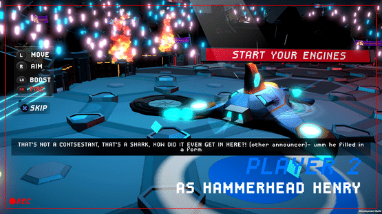 Cosmodome: a wrestling inspired, intergalactic, arena-based, ship combat game where the audience decides who wins or loses. Fight with 4 different characters each wielding their own unique ships and weapons.