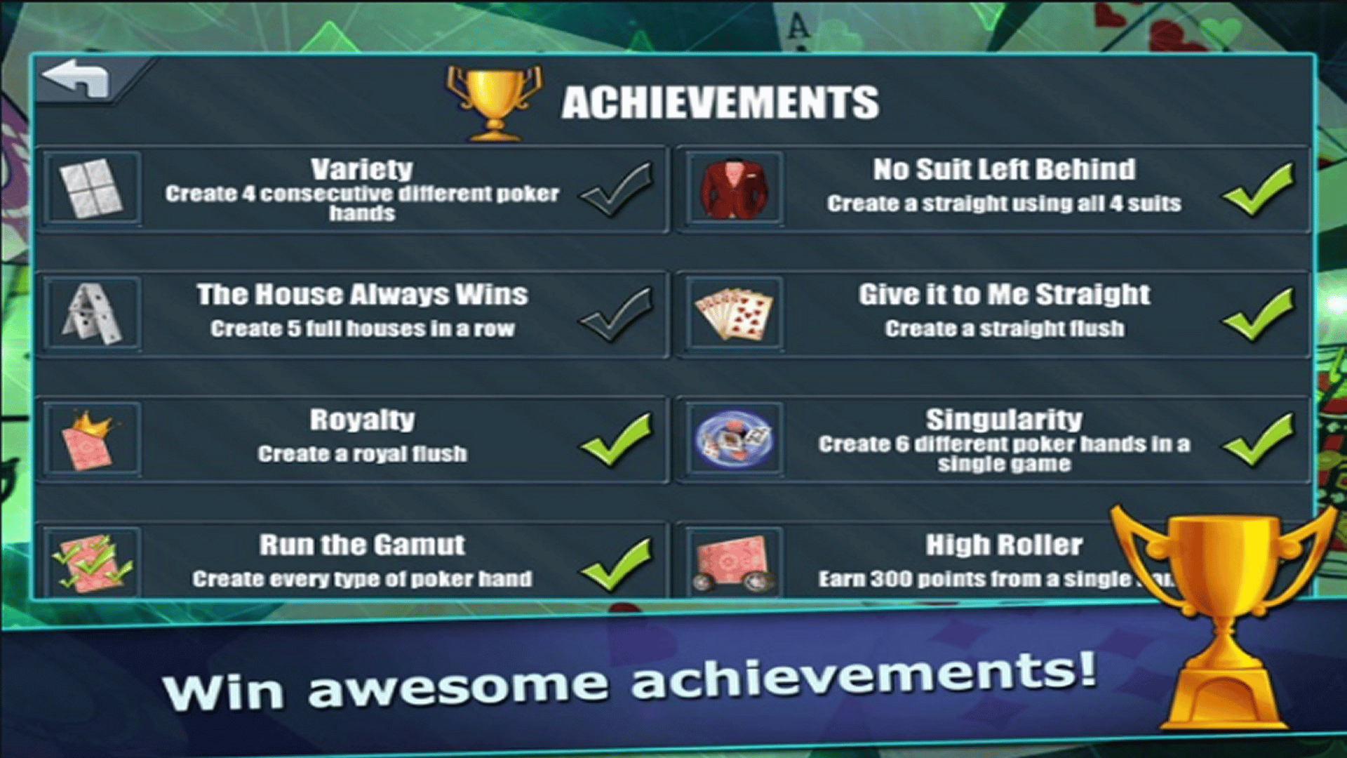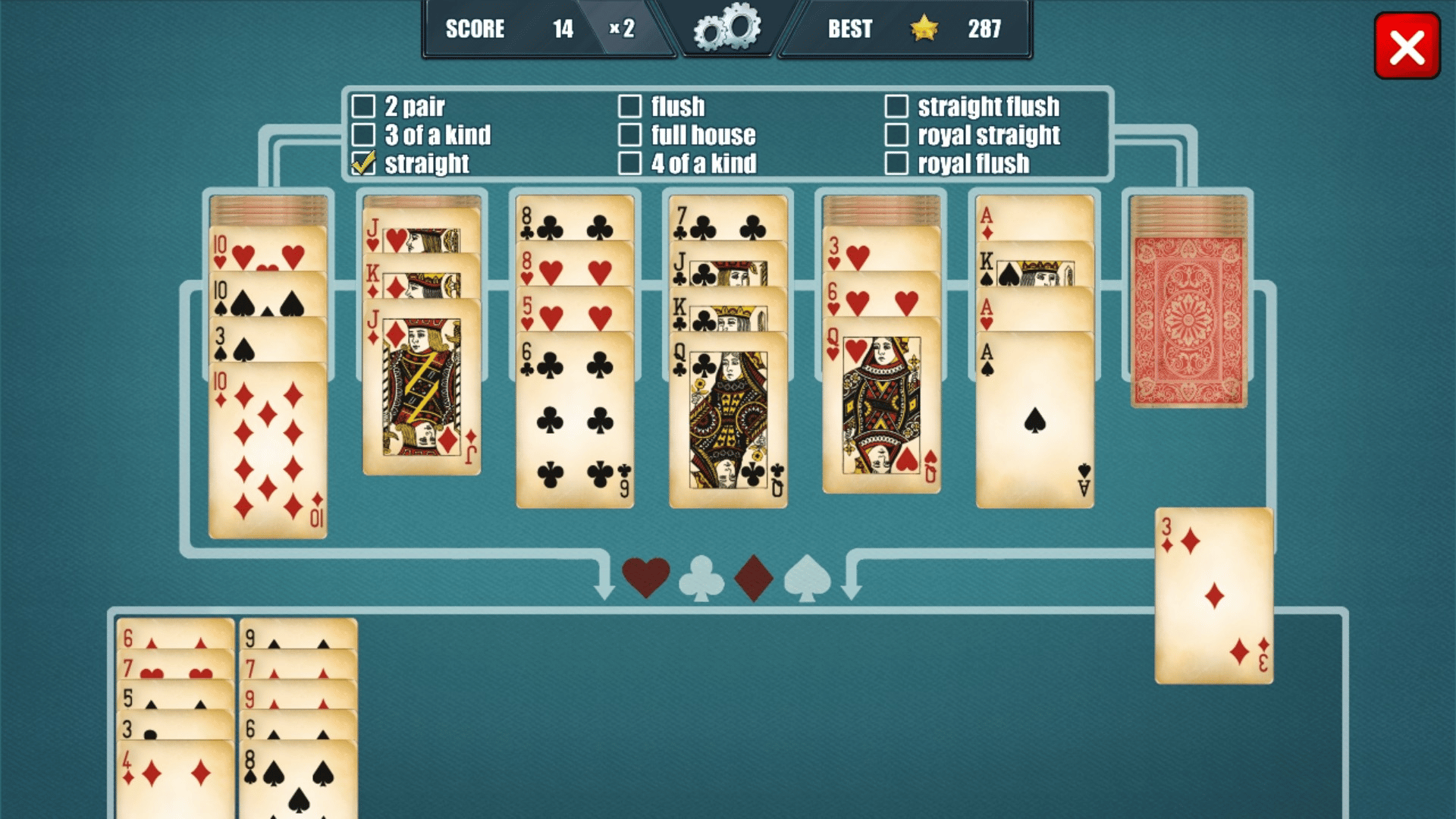 Poker meets Solitaire in this innovative new mashup! Pokitaire is a fresh mix of Solitaire and Poker... Drag cards between Solitaire stacks to create poker hands, like a full house or royal flush. Each new hand increases your score multiplier to get you to the top of the leaderboards!