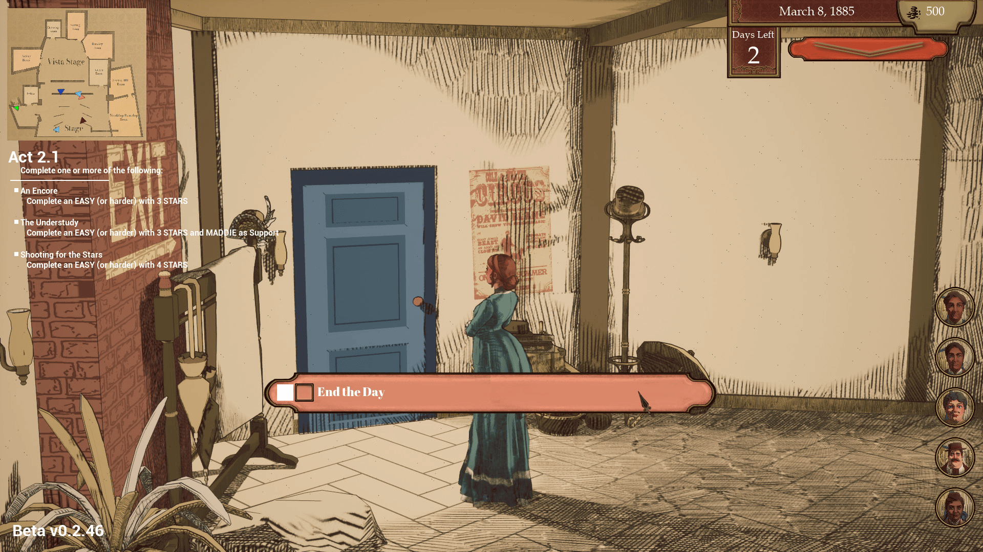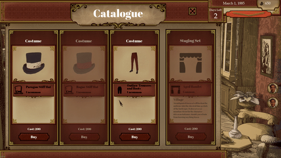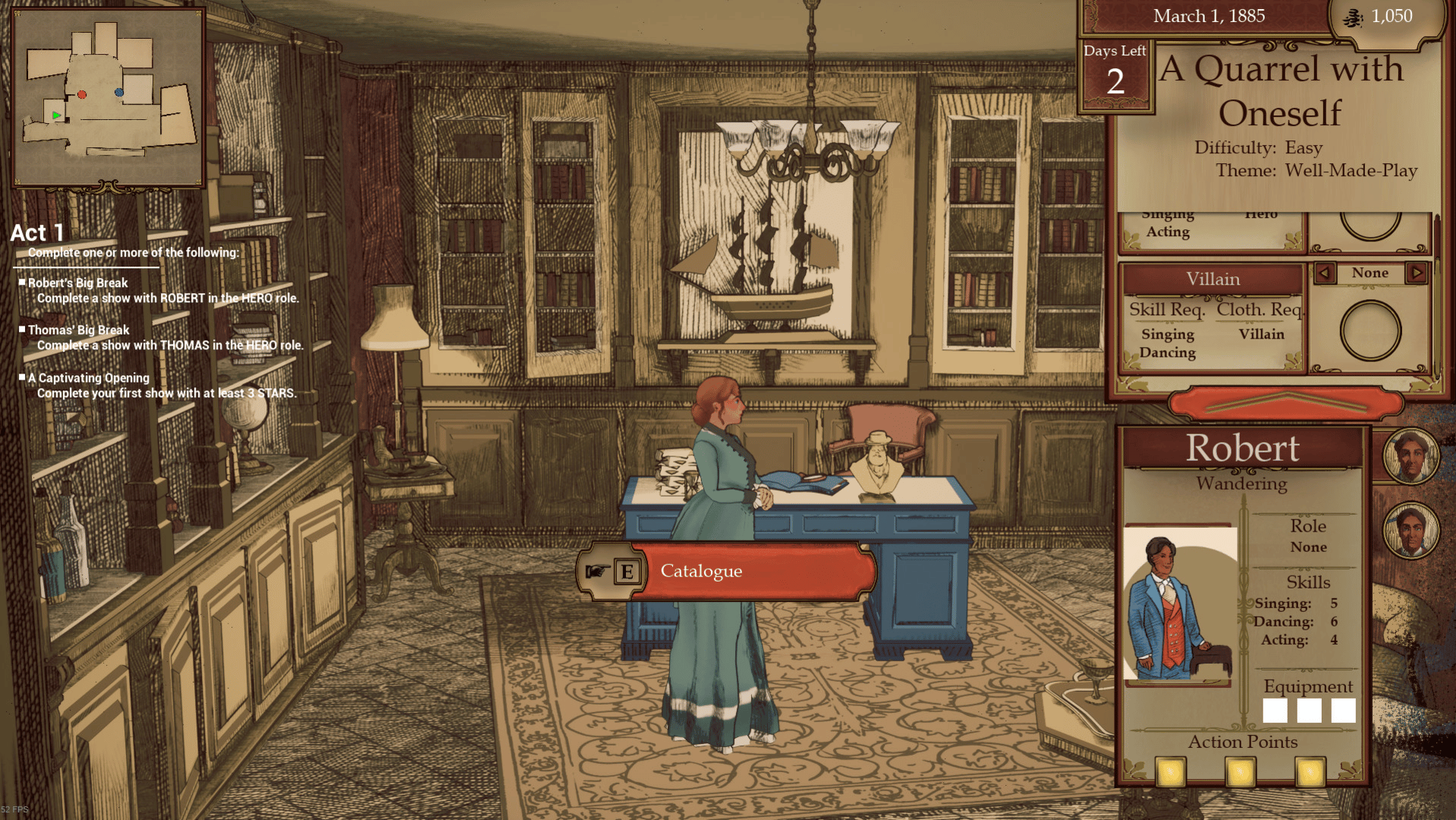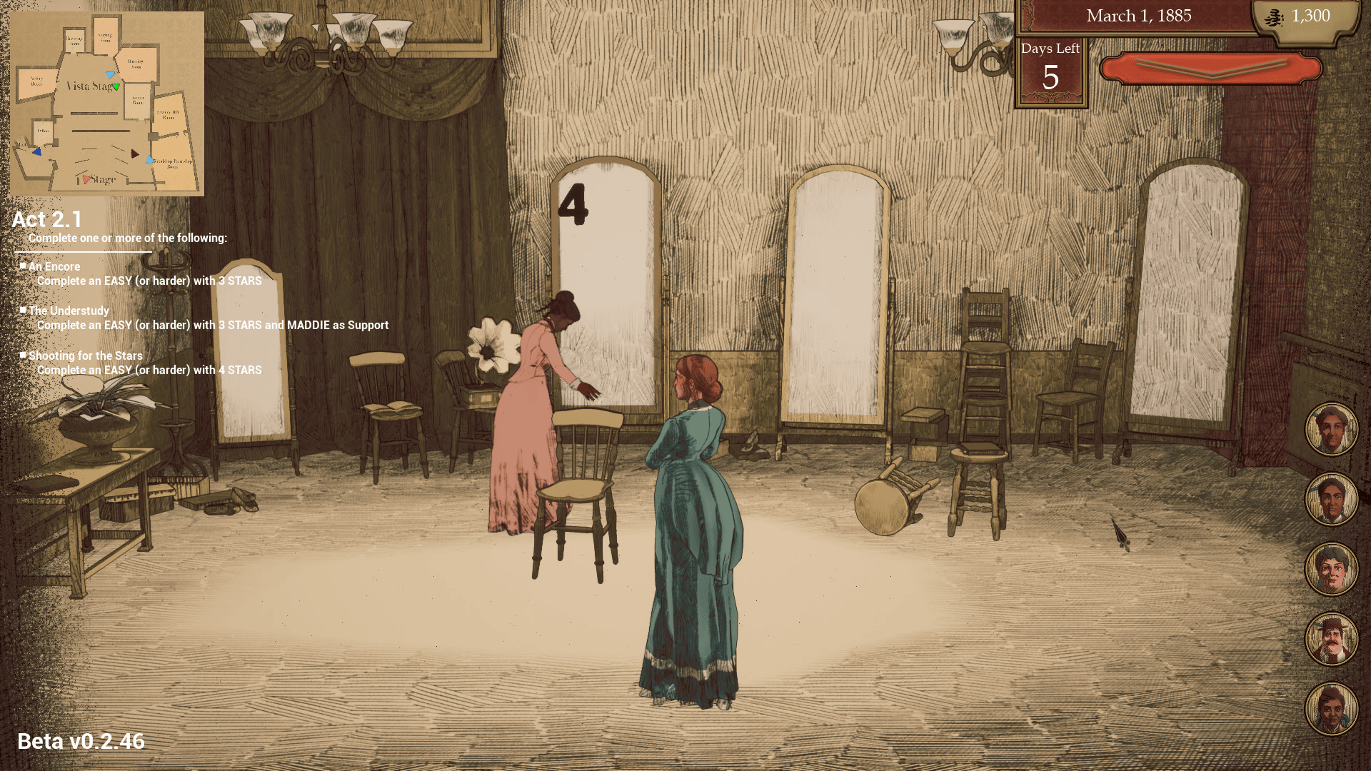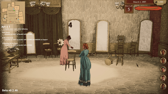 A charming management game set in an old Victorian Threatre. You are put in charge of a troupe of actors, it's your job to make sure your actors and the stage are ready to put on a perfect show! Train your actors, resolve their conflicts, dress up your troupe and set the stage for the final play!