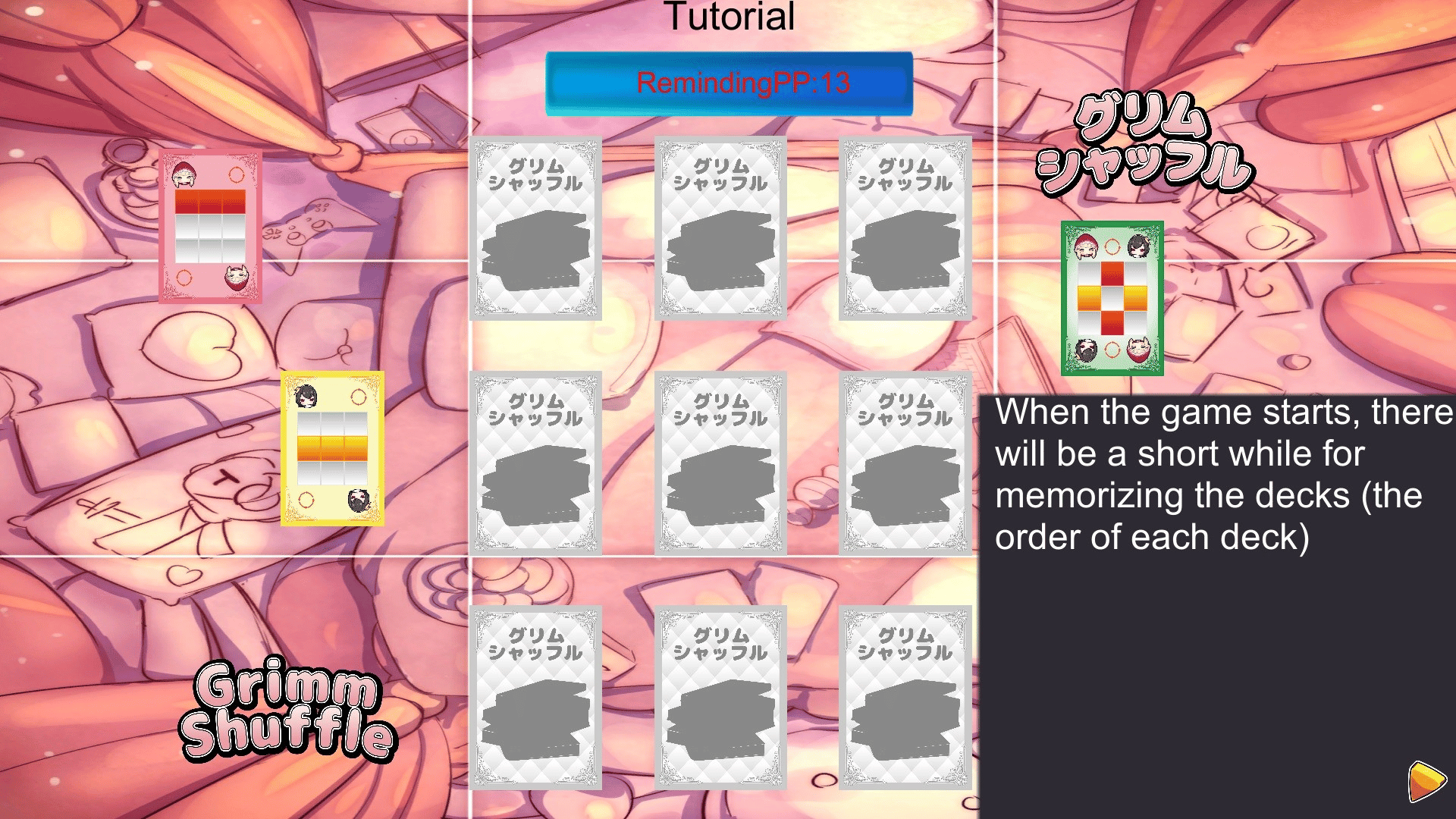 A memory game with pictures in a Japanese cute & fairy theme style, rearranged from the actual board game "Grimm Shuffle". Easy gameplay with relaxed play time. Complete the tutorial & play in different difficulties.