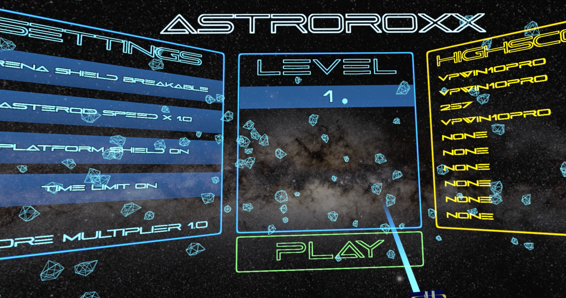 Astroroxx is for everyone at every age. Surrounding 360° space attacks with virtual asteroids and you have to fight them. Shoot all asteroids within 90 seconds to reach the next level, and defend your high score. Featuring different space environments and a music tracks for the right sci-fi mood.