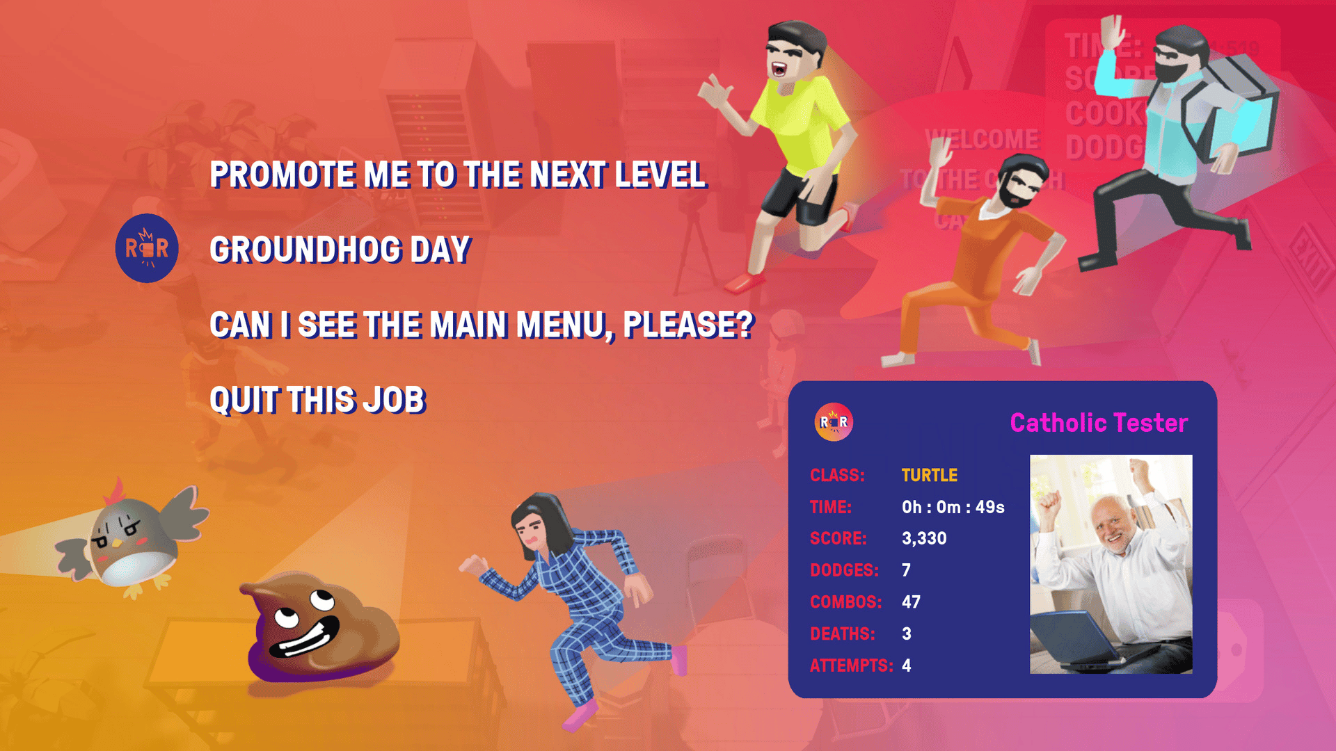 Crazy side-scrolling 3D game set in daily routines like escaping from work, buying at the supermarket, having a drink in a bar, stopping a fire or capturing some narcos. 10 Routine Levels and an extra Endless Mode with unique skills to master: dodge, jump, roll, engage, brake, turbo, build and push.