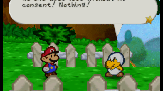 Book of Mario is a text-hack of the Paper Mario (Nintendo 64) created by Fatguy703 and his fans. The text within the game is produced by oscillating translations several times (with Google Translate) to change the dialogue, creating a very different plot from the original game. The game also has a new badge added, which was only obtained via hacking.