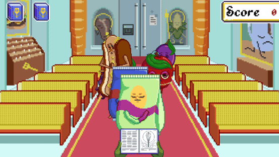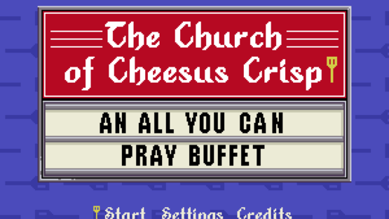 You are Fr. Salad, the pastor of The Church of Cheesus Crisp. You've been given the holy book to tell each parishioner a parable, a life lesson you might say. Complete each mini-game to give each Food Person a blessing, or let sin prevail. Get the high score and get them warm, fuzzy, good good feels.
