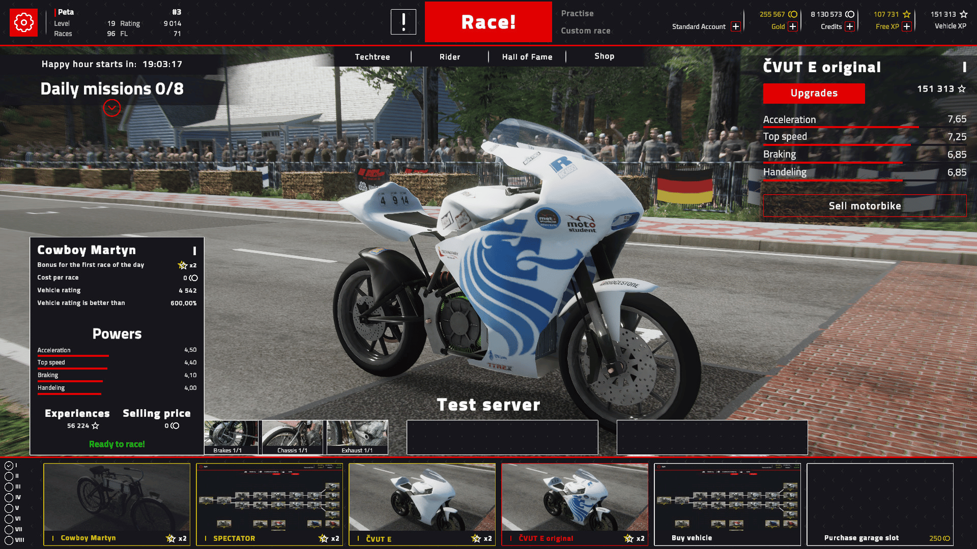 Engine Evolution is a multiplayer racing game that uses similar principles as World of Tanks - with each PvP race, against 11 other players, you gain experience and credits, for which you can buy various upgrades for your motorbike, or unlock the next motorbike.