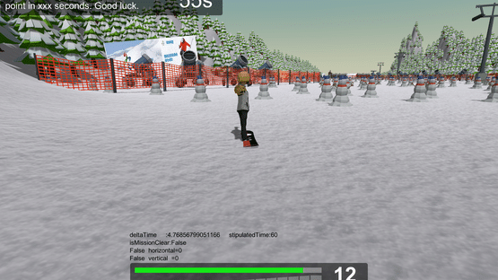 Snowboarding is simulating arcade sports game with scores. Different from other ski games, the skiers don't have any engine. Just follow gravity, Controlle the board with carving. Avoid obstacles, through the specified target, reach the key point in a specified time to win.