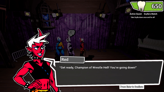 Rival professional wrestlers Red and Blue die in the ring and reawaken in Wrestle Hell, a pro-wrestling themed purgatory run by the devil herself: Wrestle Satan. The duo must prove their ability to work together in Active-Time-Battle matches on their quest to become champions of the Rings of Hell.
