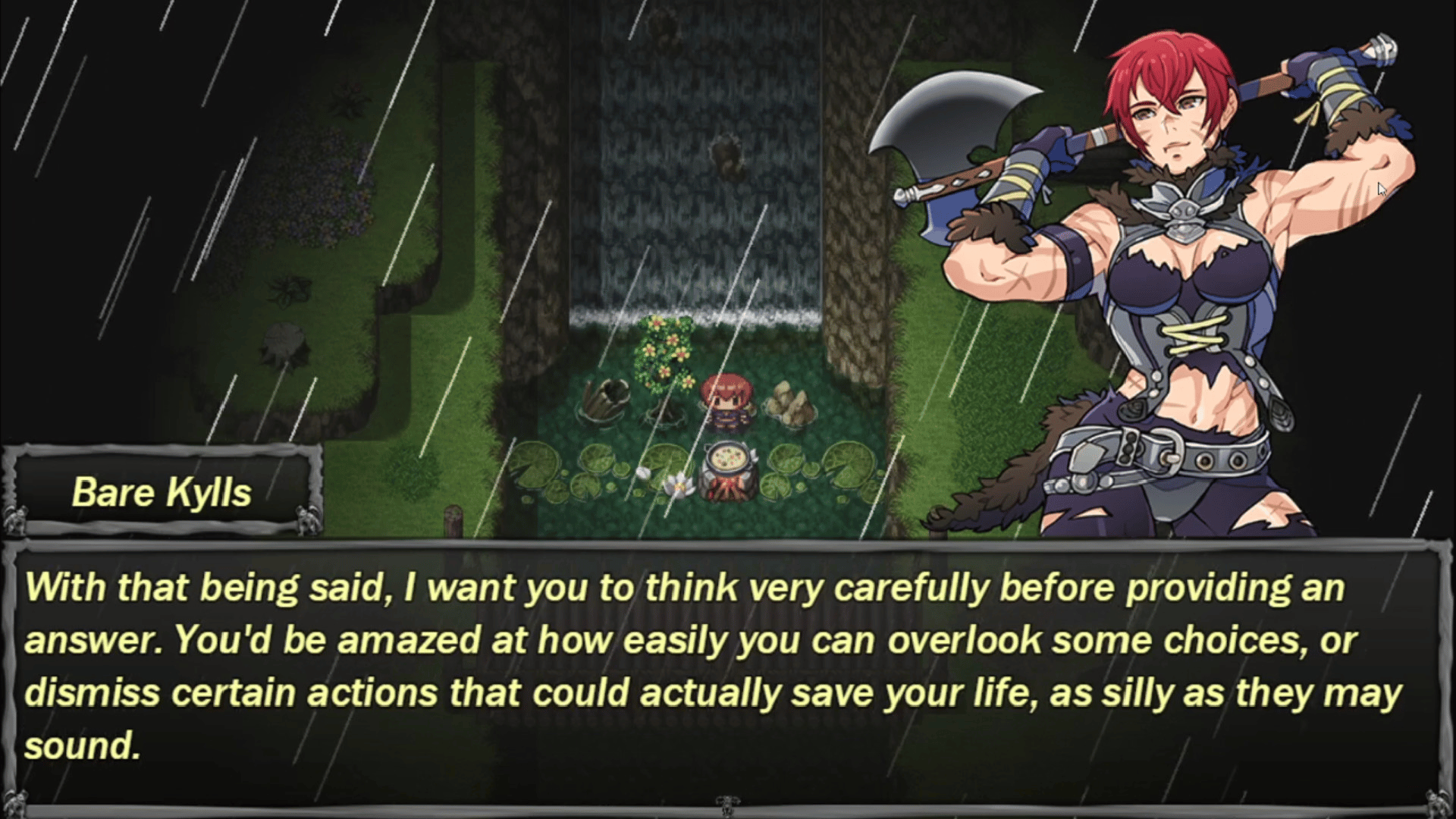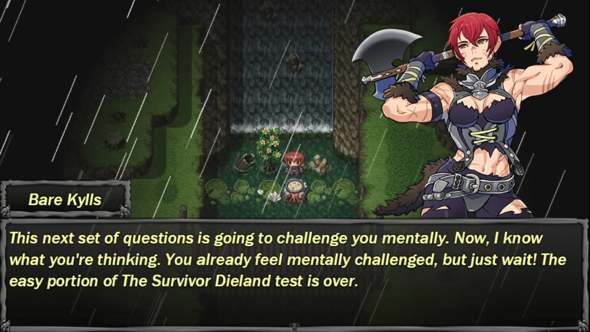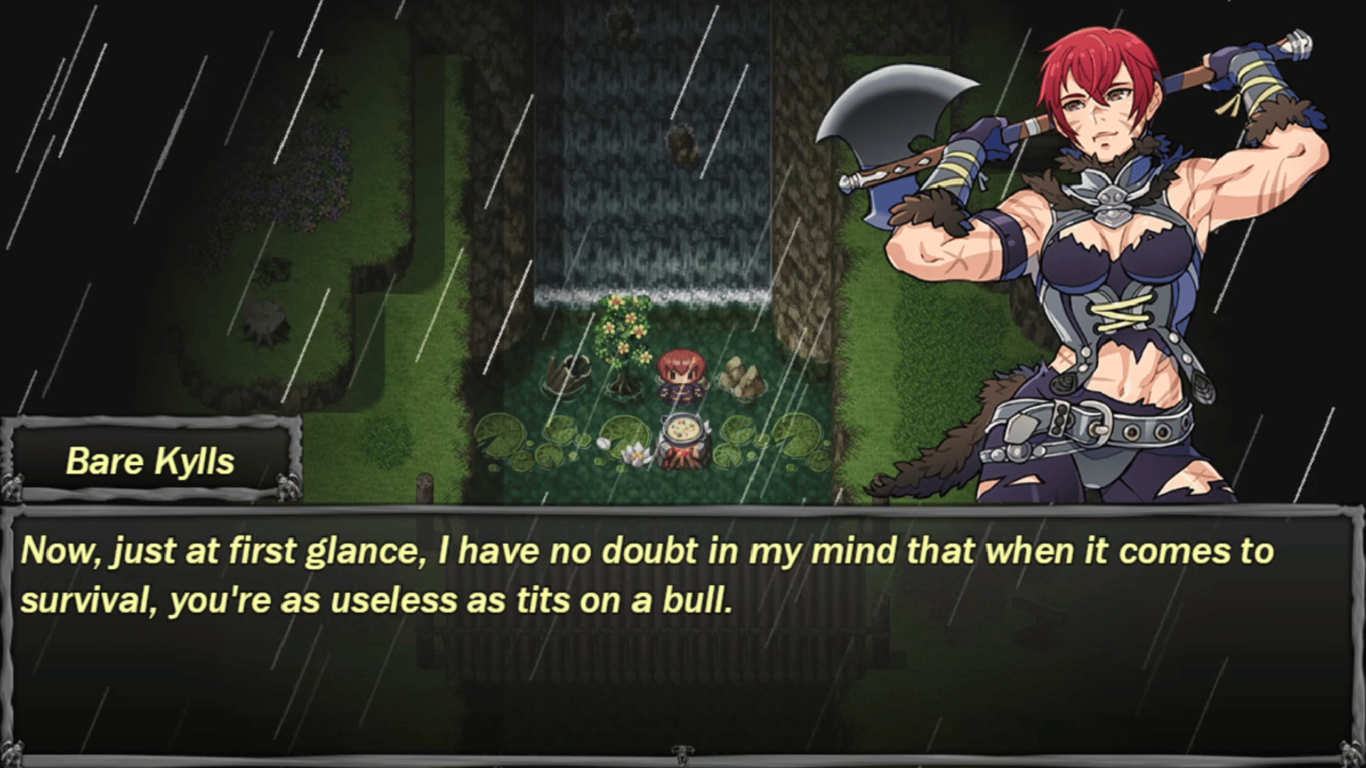 You're gonna get yourself killed being out here all by your lonesome... There's monsters on this island! Besides, It's not always the beasts you should be afraid of... Beasts are easy to predict. They just want to kill and eat you. Humans are much harder... They'll pretend to be your friend first...