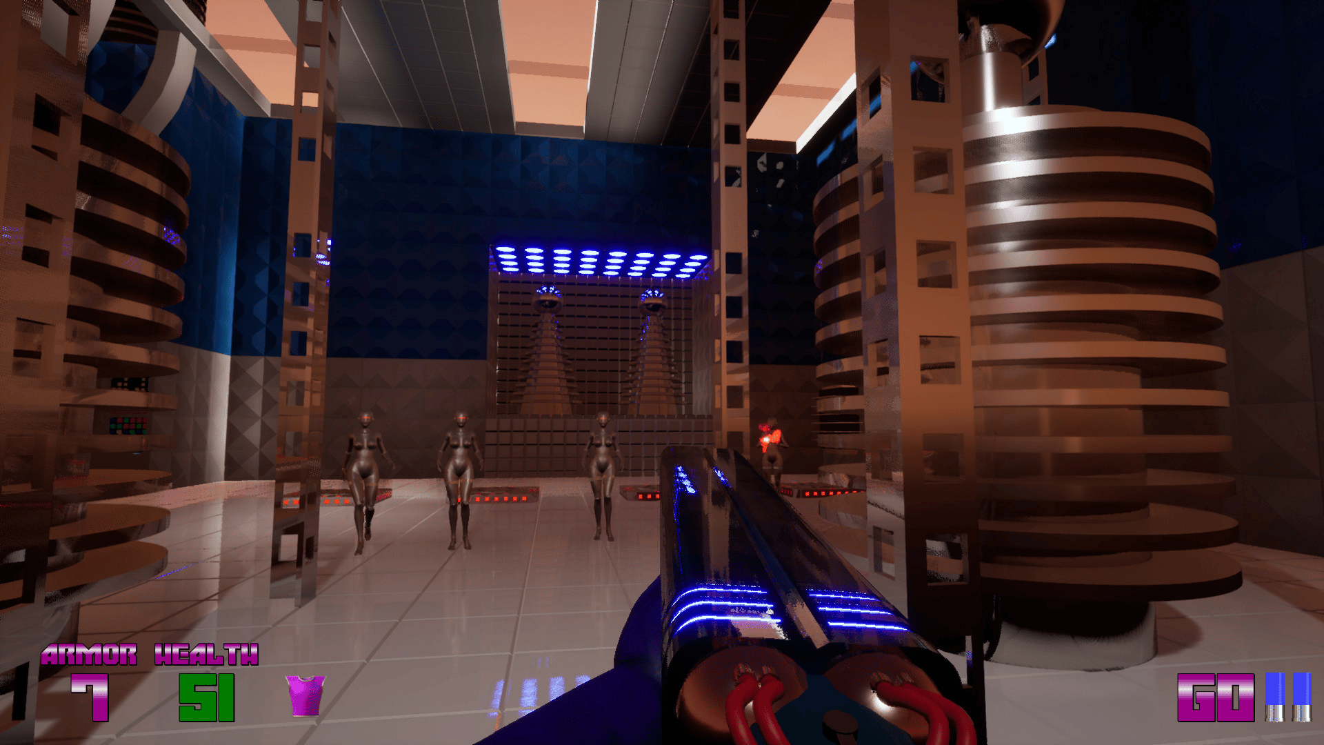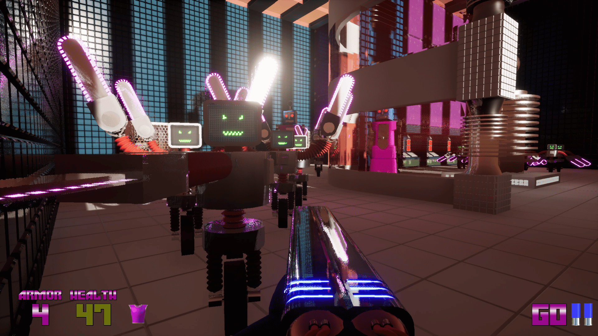 Old-school FPS in a neon package with lasers and robots! Fast paced action, bunny hopping and rocket jumping.
