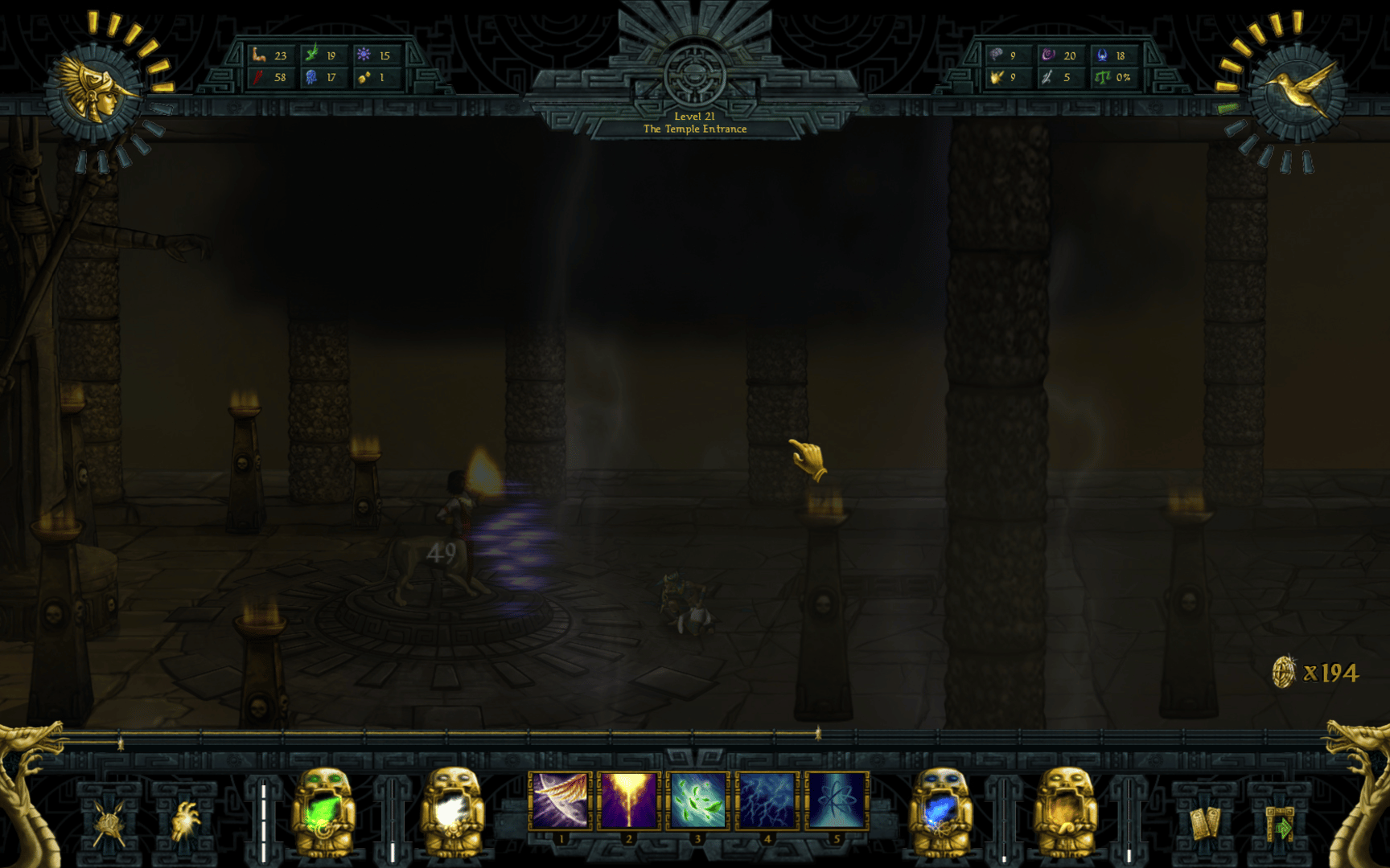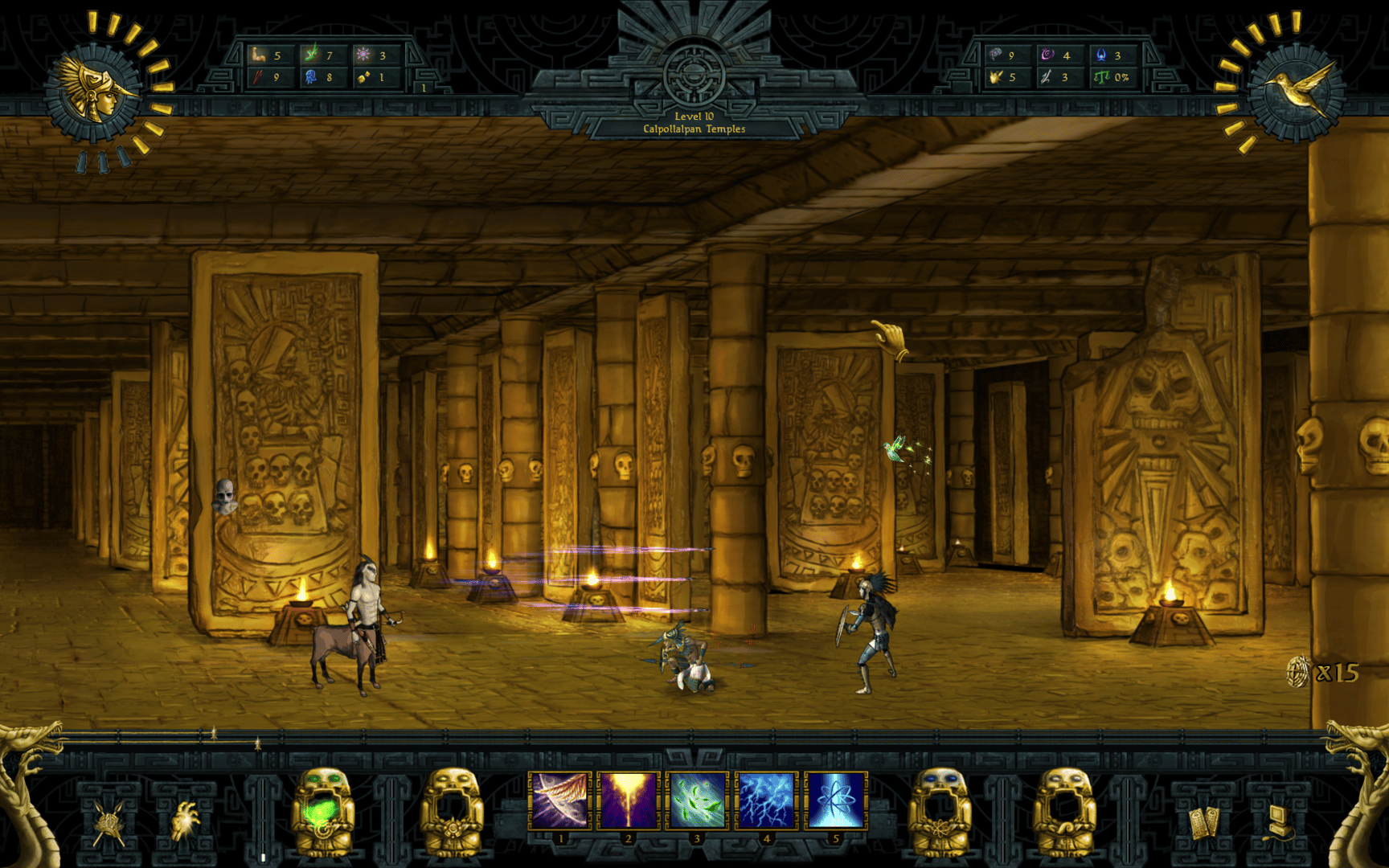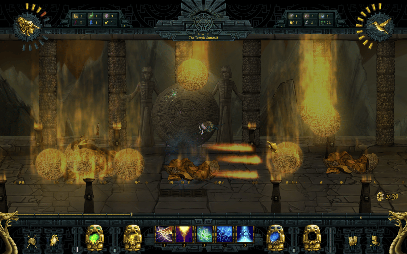 Inspired by Aztec legend, this action/rpg side-scroller will casts you into the middle of a war between the Gods and Mankind. As Huitzilo, heir of the Sun God, skilled in both the arts of combat and magic, only you can save your people from the wrath of the Aztec Gods by reuniting the seven phonograms. Accompanied by your faithful companion Ayopha - trapped in the form of a hummingbird by a magical curse – you will overcome the obstacles in you path through a combination of fighting prowess and spiritual magic.