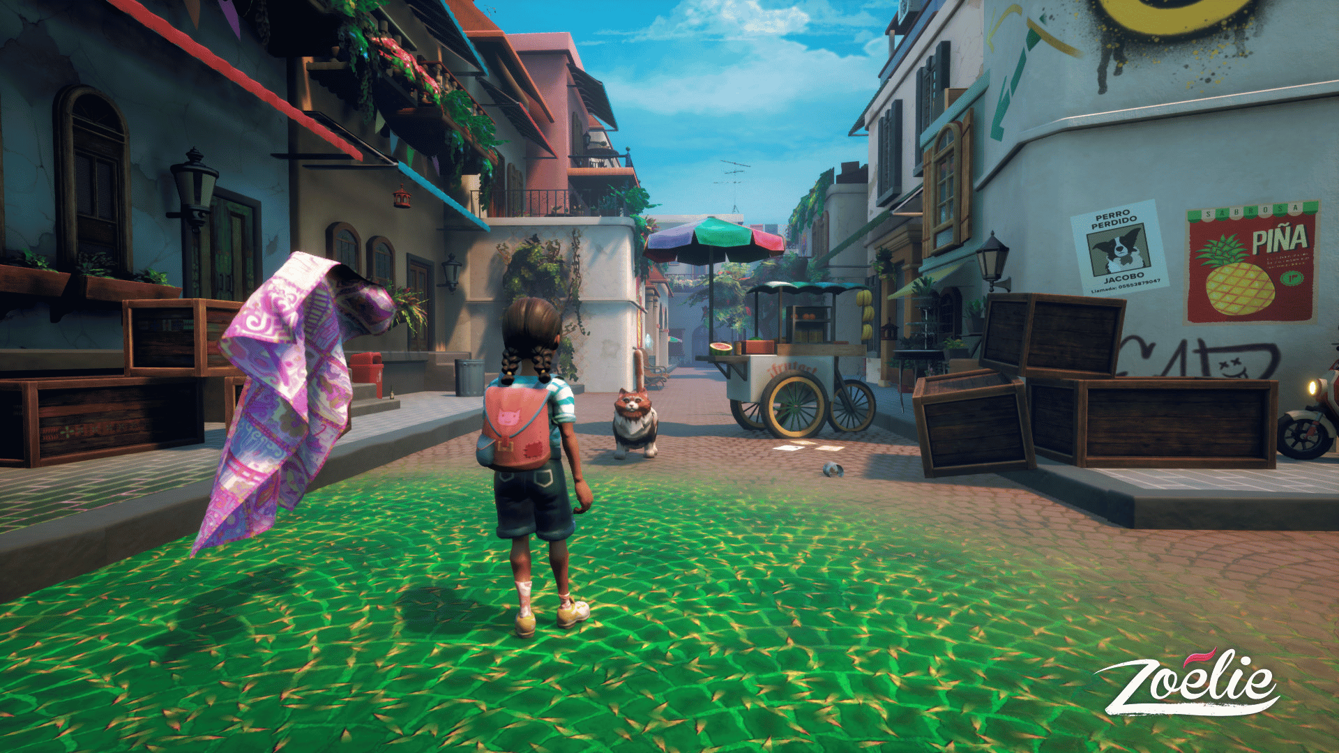 Zoelie is an action-puzzle platformer that tells the story of a young girl exploring her town of La Colina alongside her imagination-powered quilt, Sueño.