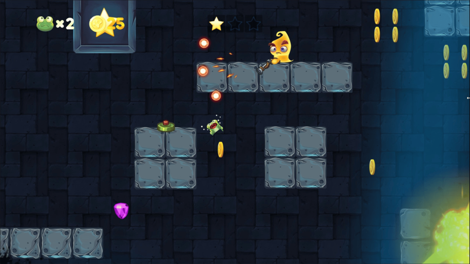 "Swing dungeon" is a platform jumping game. The game does not set the direction key, the player only needs to grasp the timing rhythm of the key, can easily explore the movement with one key. The player will play a frog, explore the dungeon freely with his flexible tongue.