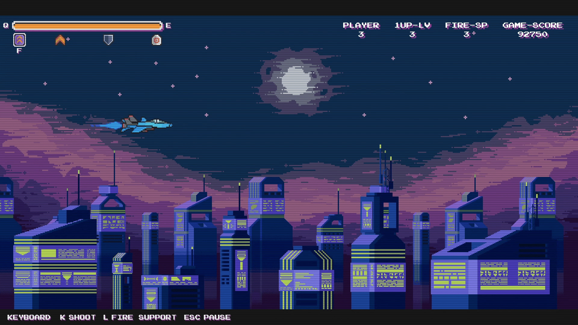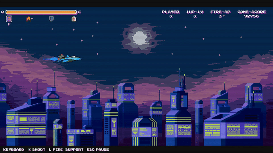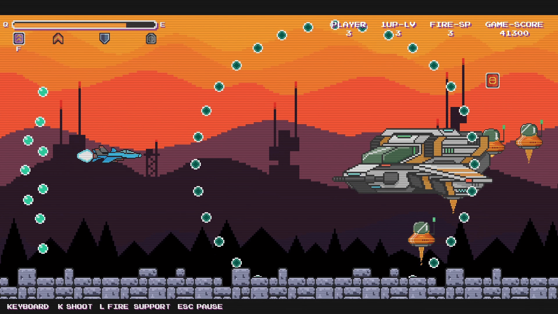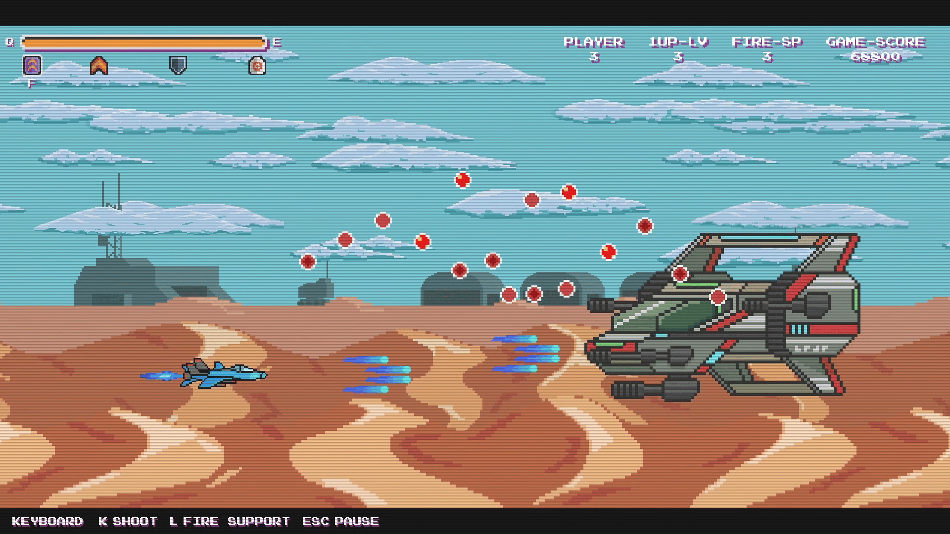 This is a horizontal retro arcade-style STG shooting game. Players need to control fighters to defeat the ultimate villain FightFox and rescue EAU and the Southern Cross Union headquarters.