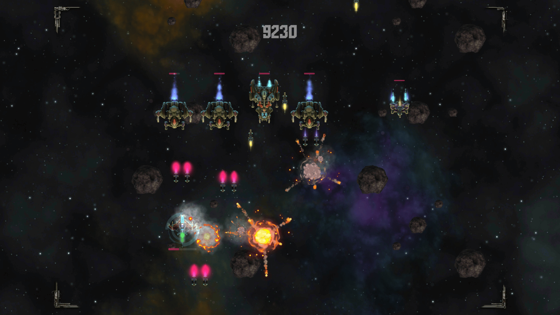 A modern remake of classic vertical scrollers which were popular in the arcades of the 1980s. Control a spaceship with directional keys or WASD, and shoot rockets upwards with the Space key. Destroy incoming waves of alien spaceships and dodge rockets they fire at you!