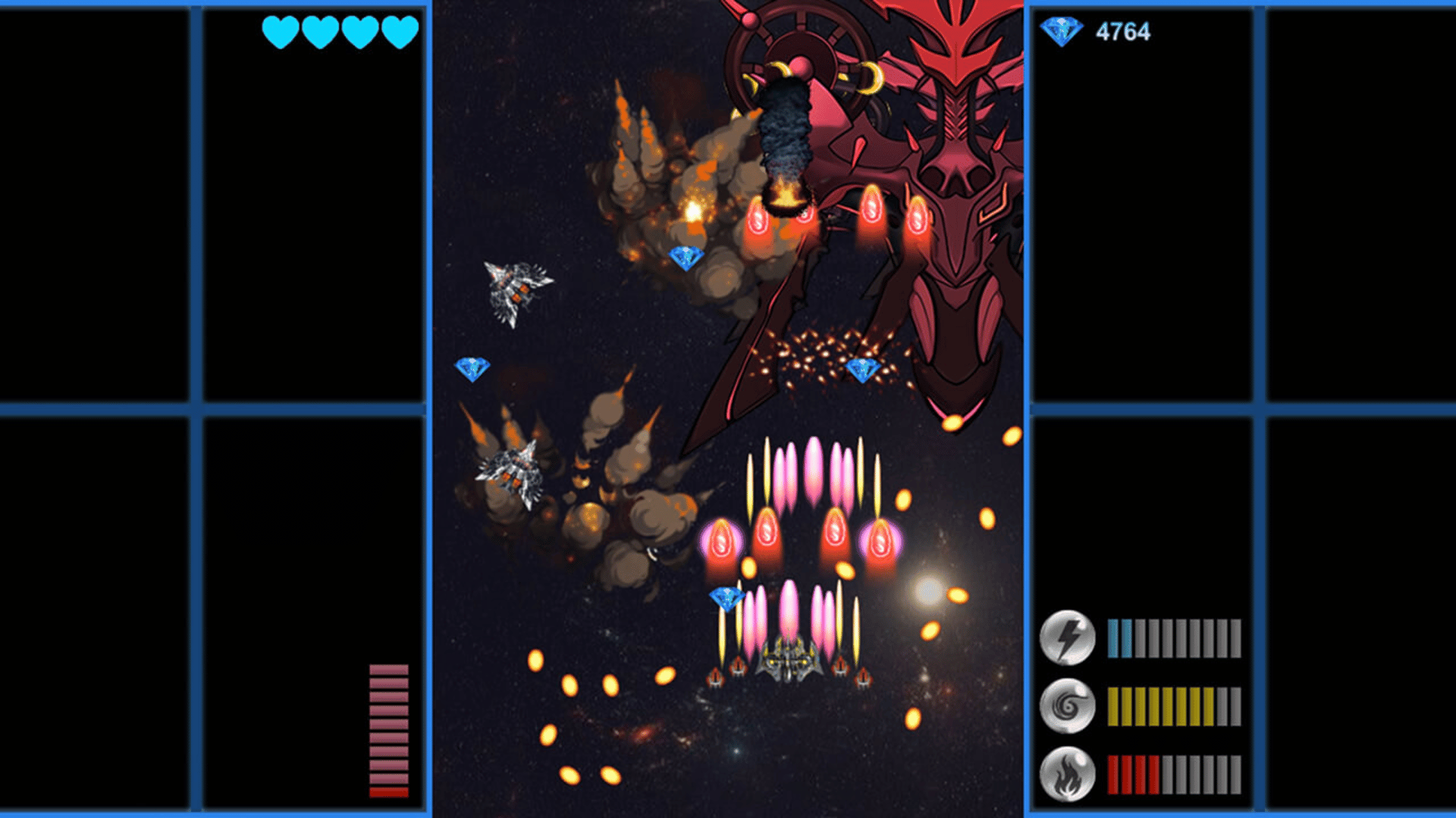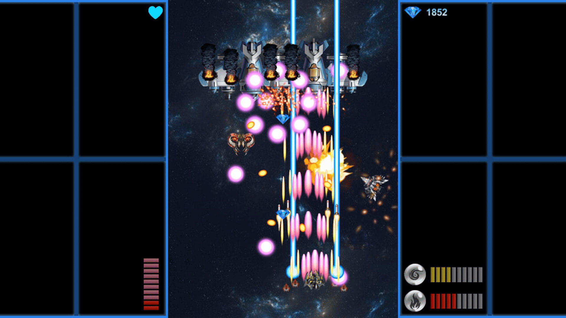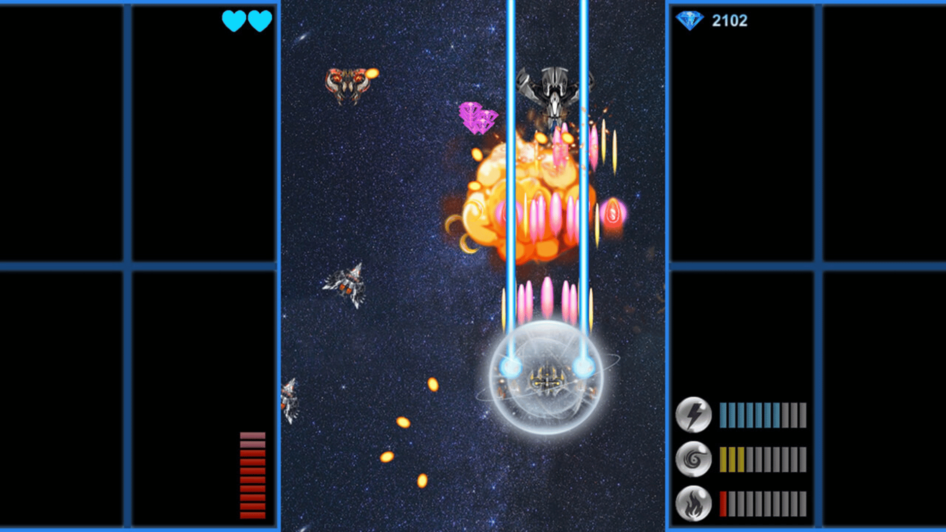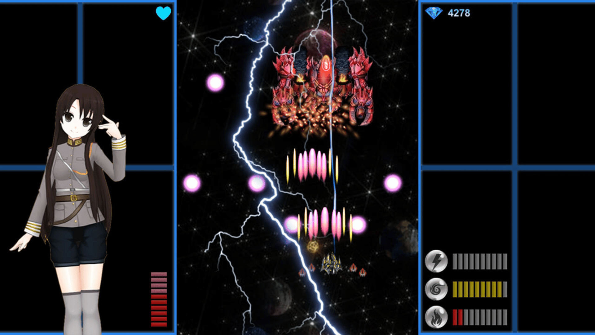"Elemental Angel" is a vertical scrolling flying shooting game. The player controls the protagonist fighter plane to fight the enemy in the universe.
