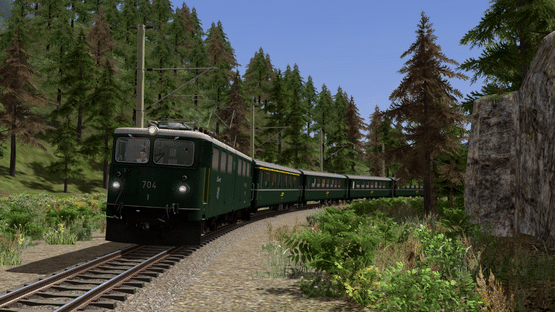 Experience a touch of history with Rivet Games' RhB Enhancement Pack 05, which features a unique example of a Ge 6/6 II locomotive in classic RhB Green livery!