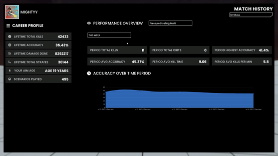 Mightyy's FPS Aim Trainer takes Aim Training to the next level. All new features you didn't even know you wanted from aim training, including replay system, advanced statistics and a wealth of customization designed to rival other aim trainers on the market.