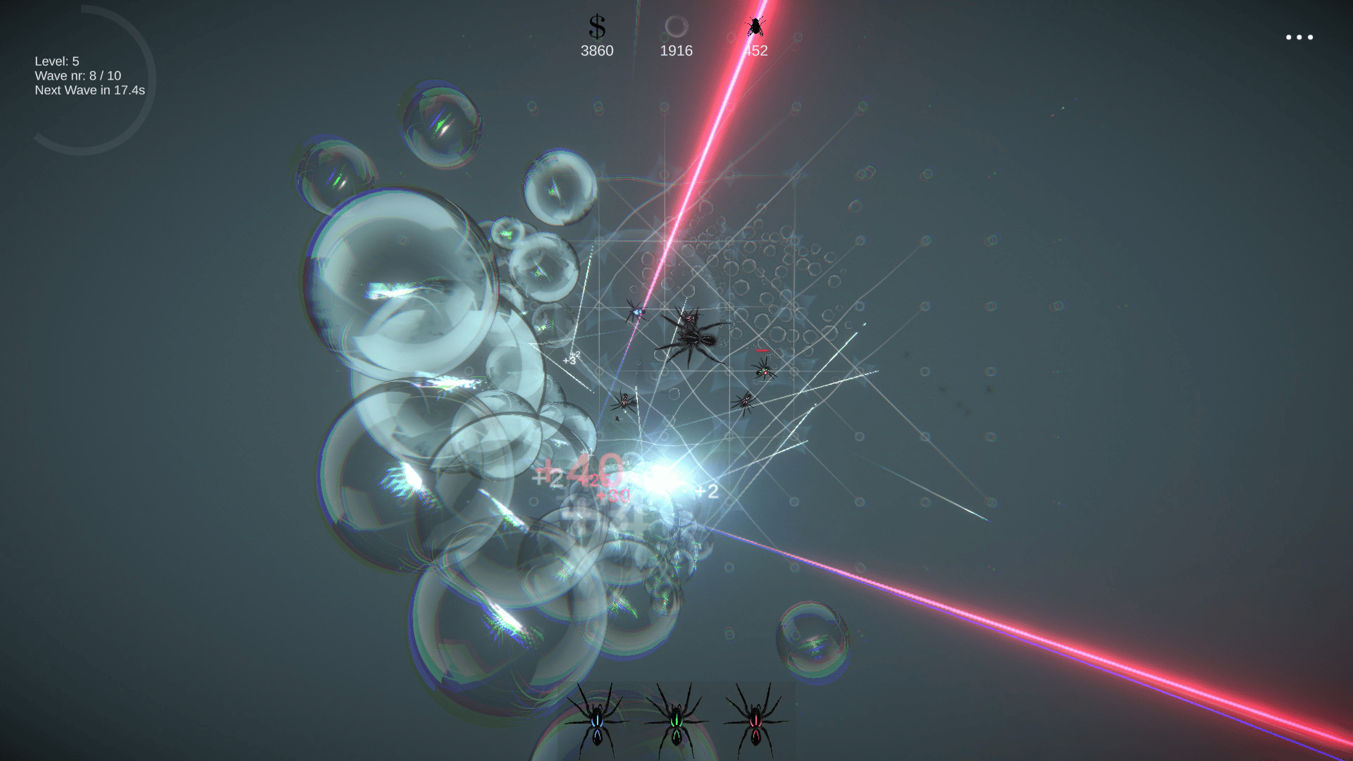 SpiderPunks is a unique blend of three-game genres: Builder/Defense, Action, and Puzzle. Earn money and spend it on new spider's web connections. Buy new spiders or heal injured ones. Get experience to develop more spider's skills to fight against toxic soap bubbles.