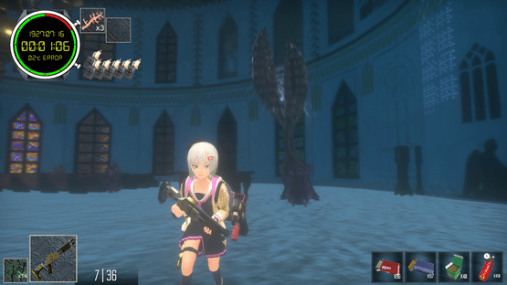 Awakening before a church stood in the middle of a meadow, Mutsuki follows a white cat inside and begins to explore. Their wristwatch reads 23:50, on the 15th of July 1927. After 600 seconds have passed, Mutsuki must defeat the monsters that appear and escape from this nightmare.