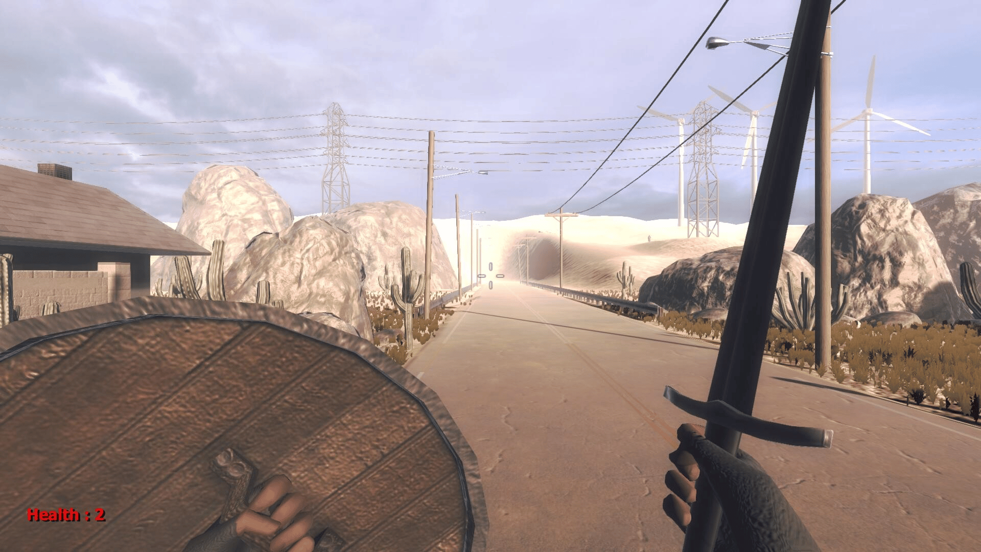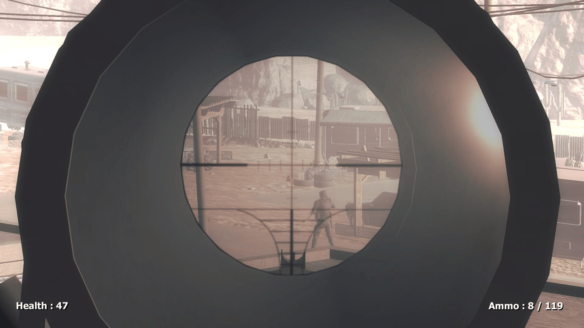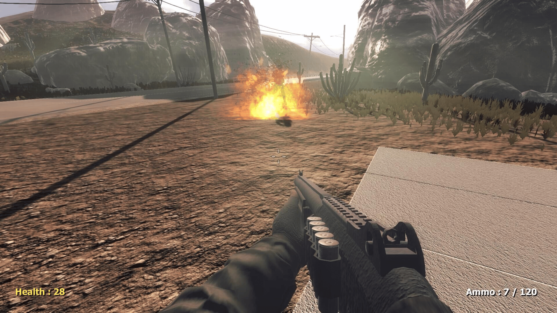 This is a first person action shooting game,Players are free to explore their surroundings,Players are surrounded by enemies. Players can kill enemies or avoid enemy attacks ,After killing the enemy, you can pick up the enemy's weapons,Players need to keep their health as long as possible.