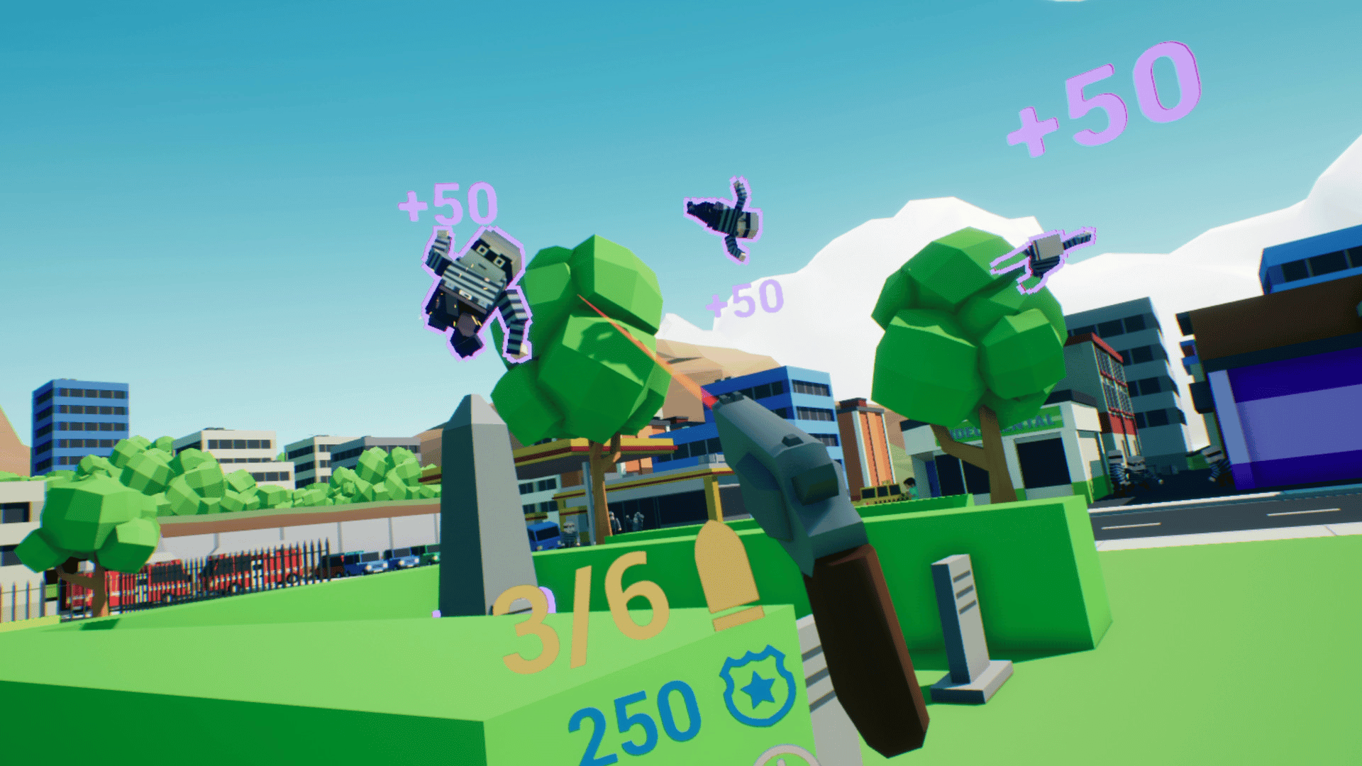 You take the role as drive-by cop, load your gun and try to steer and shoot at the same time as you drive through the city and bust as many criminals as you can. Supports both VR and Non-VR.