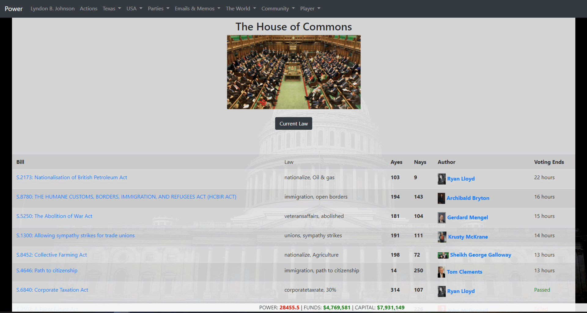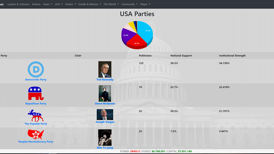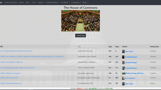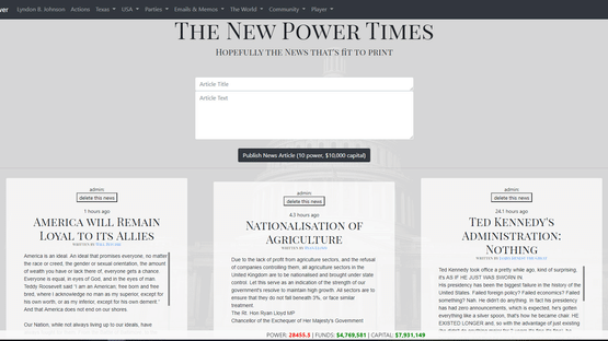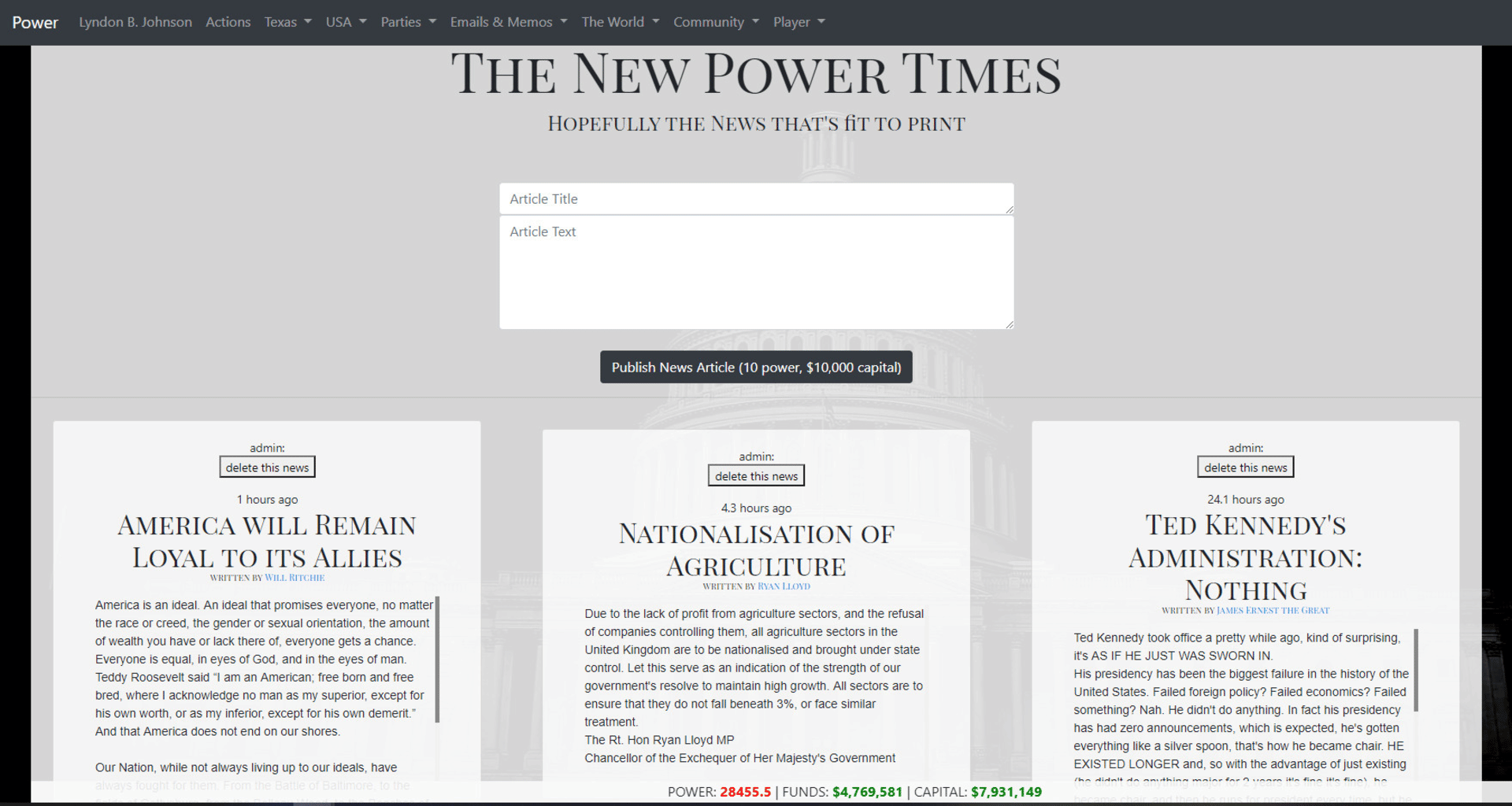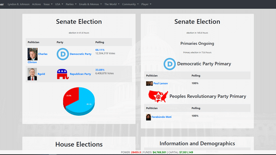 Power is a global political and economic simulation game where you can play as a powerful politician or businessman in a number of detailed countries. Starting from nothing, you can seize the highest offices in the land through free and fair elections, or dirty tricks and deals.