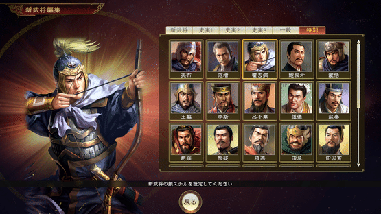 Officer data that can be used to introduce ancient officers into the "ROMANCE OF THE THREE KINGDOMS XIV" scenario you choose to play. Note: Officer data added with this DLC cannot be edited by using Manage Orig. Officers.