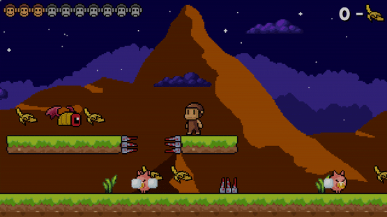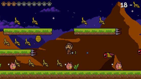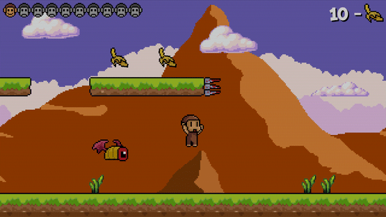Dudu Monkey - 2D platformer, with a pleasant picture, where they show the story of a little monkey, which saves his jungle and bananas from evil monsters, pushing out from the walls and joining the high platforms to jump on the enemies heads.