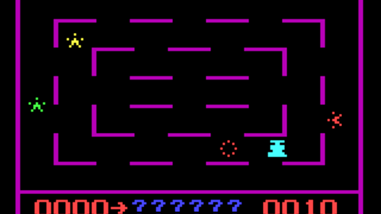 Robot City is a maze shooter. The player controls a robot trying to destroy the Andromeda robots inside a maze. The Andromeda robots have force fields and can only be destroyed by being shot in their backs. They only shoot forward, and will do so whenever the player crosses their line of fire, even when walls are in the way. If the player manages to make two Andromeda robots destroy each other, bonus points are awarded (25 instead of the usual 10 for destroyed robot). The player is killed whenever hit by enemy fire or colliding with the Andromeda bots (or their remains, when destroyed). After killing all four robots in a level, the player progresses to the next, more difficult, level.
