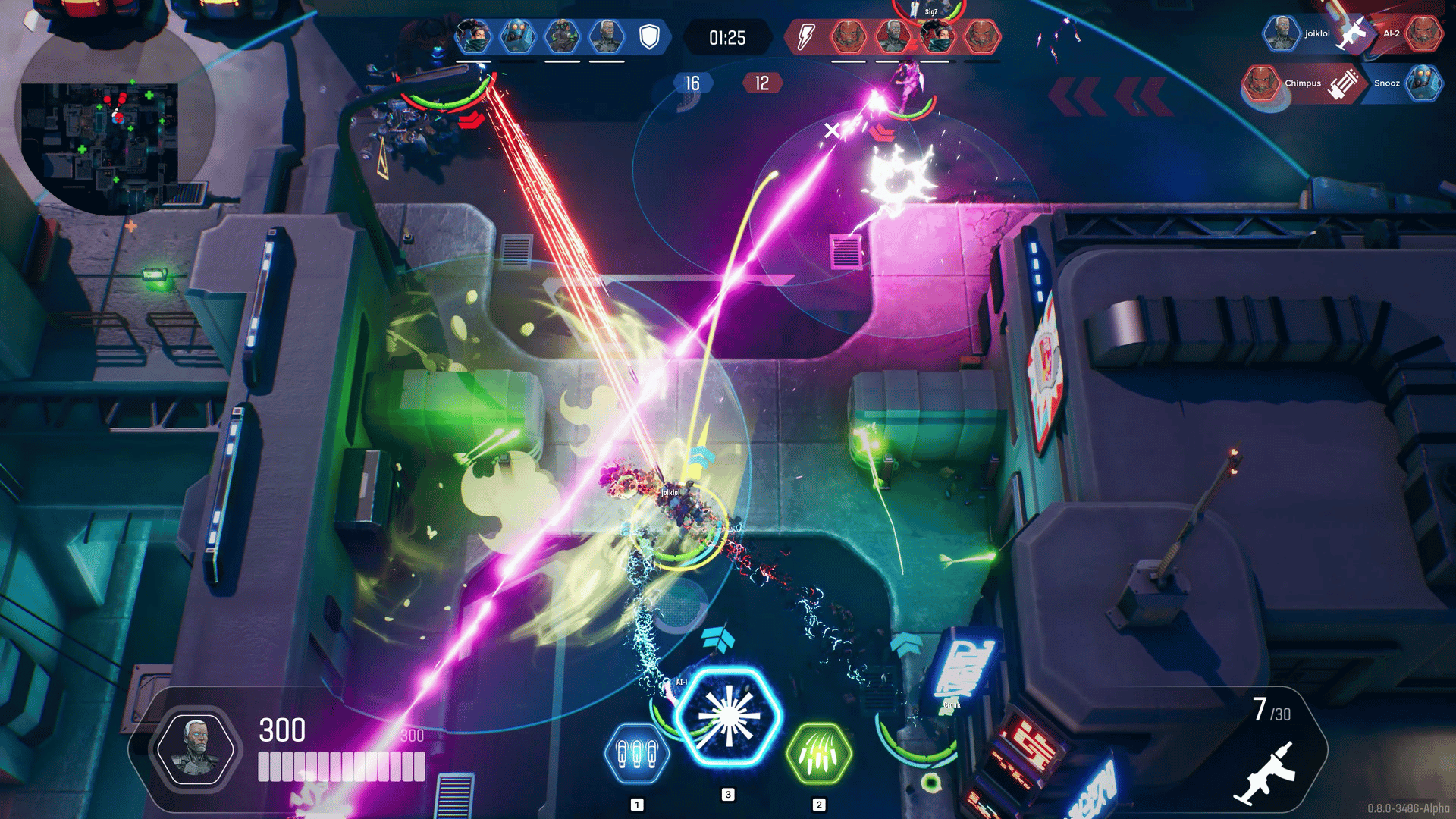 The Machines Arena is an adrenaline-fueled 4v4 top-down hero shooter where players compete in chaotic close quarters combat to plant bombs, deliver payloads and rack up kills in a growing number of game modes. Choose between 9 unique characters spread across 3 distinct roles and dive right into the action. Find your hero, hone your skills, and dominate the arena.