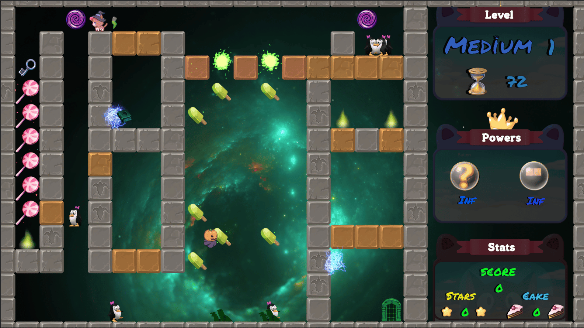 Feline Sweet is a family friendly 2d arcade puzzle platformer and level editor featuring pixel cats in hats and hidden objects. The game has 2 modes normal and Custom (for sharing levels between friends and for playing ones you design yourself).