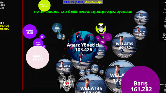 In AgarZ, the player manages a circular cell using the mouse and keyboard buttons, this cell can be divided into 25 parts. The object of the game is to collect the bait randomly scattered around the map, find a virus around, spam it and produce a score Other players with smaller cells than the player can also be swallowed.