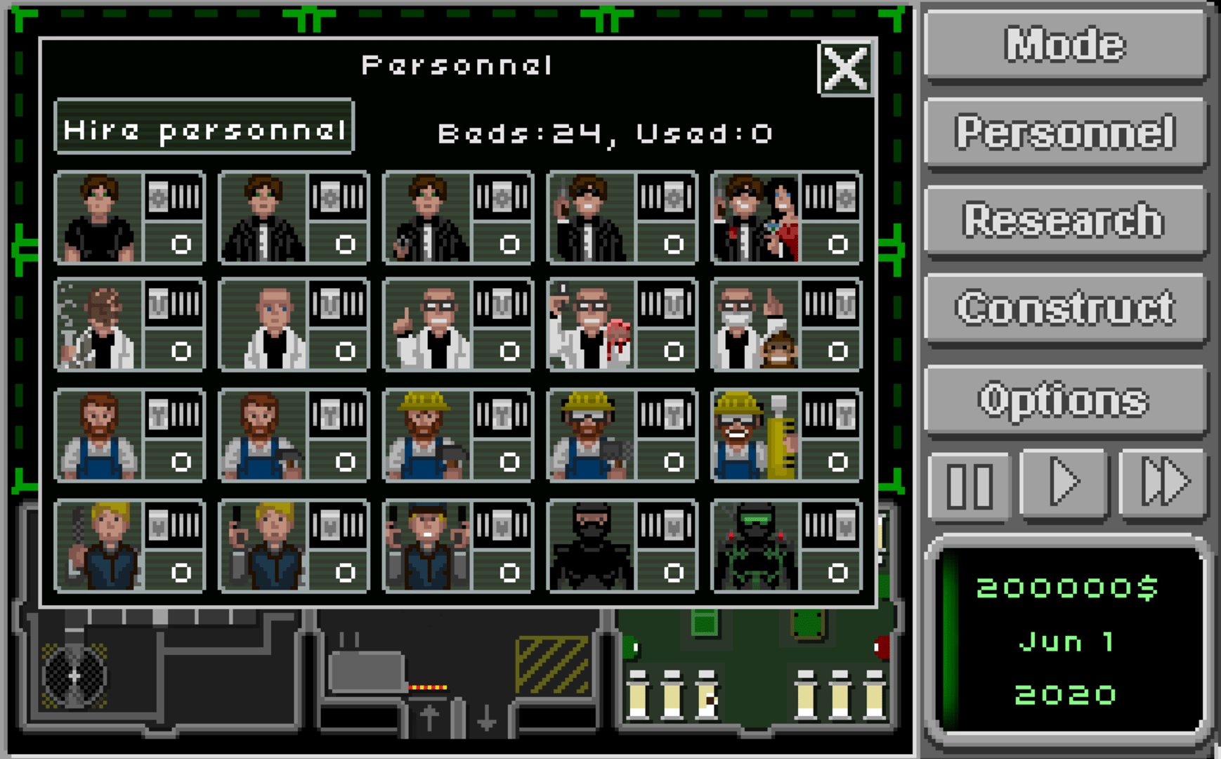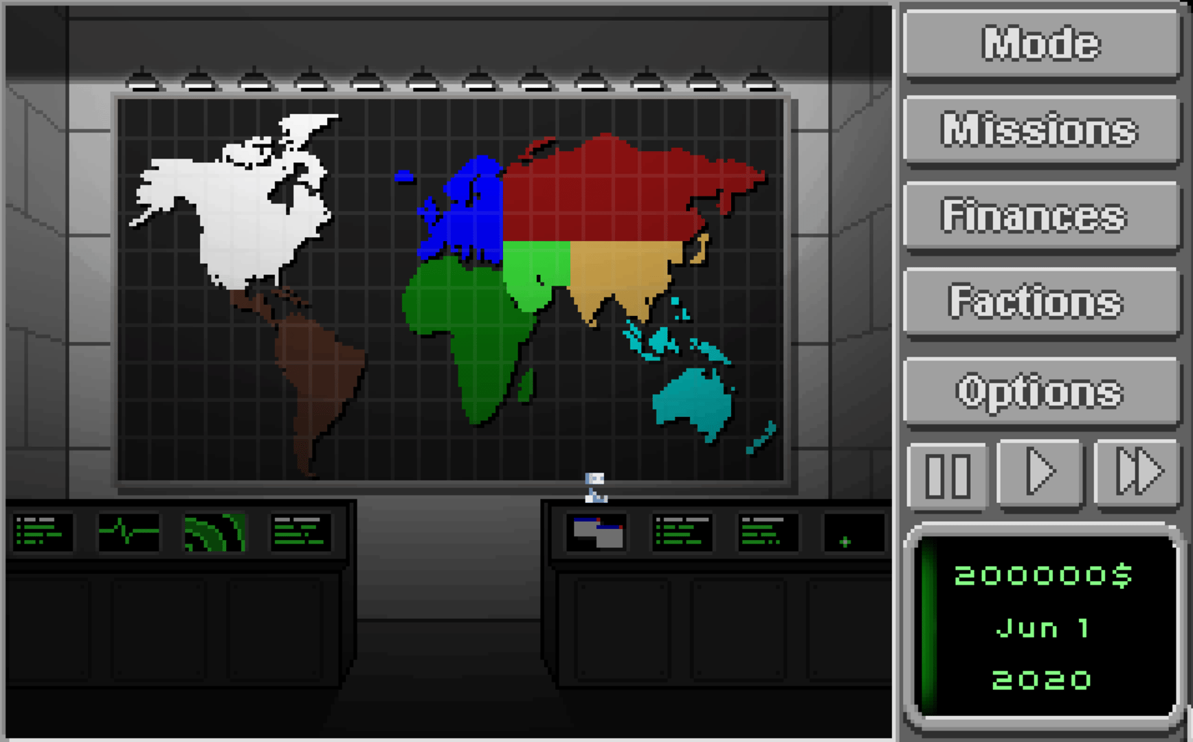 A short game, created in the Adventure Game Studio engine, as part of a monthly game-making competition back in 2012. Take a loan from the World Bank of Evilhood, recruit agents, build a base and take over the world!