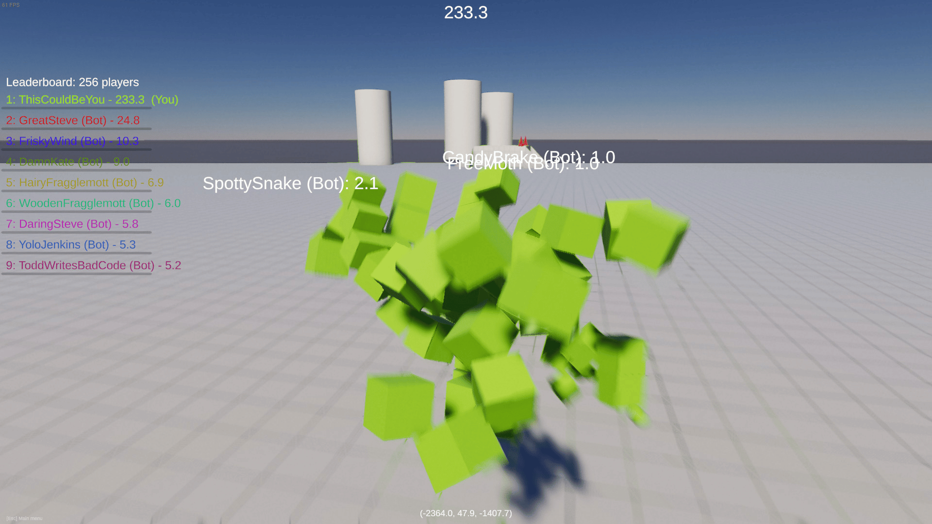 In this game you must roll around in a wacky manner collecting shapes to increase your mass and eat other players. Compete for the top spot on the leaderboard!