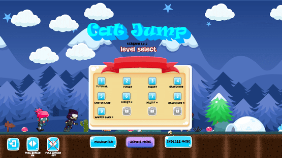 Cat Jump is a simple platform game. help sissy and her friends through a world full of enemies and dangers. or survive in endless mode. Choose between 4 characters. The game is an indie game developed by a human. Climb up the wall to reach otherwise inaccessible platforms. Its a Speedrun game!