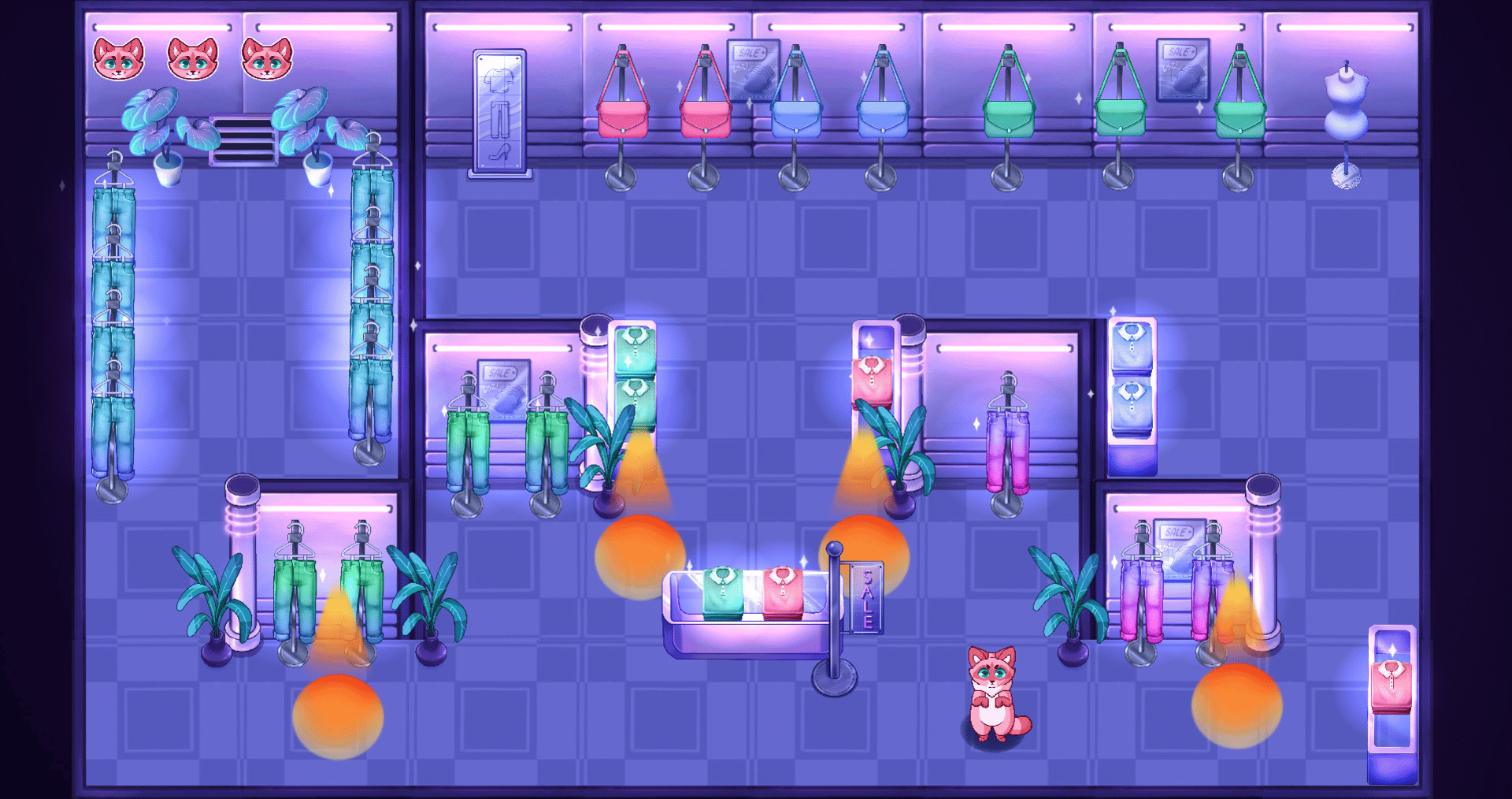 Avoid menacing spotlights while running around stores in a shopping mall and stealing everything in sight.