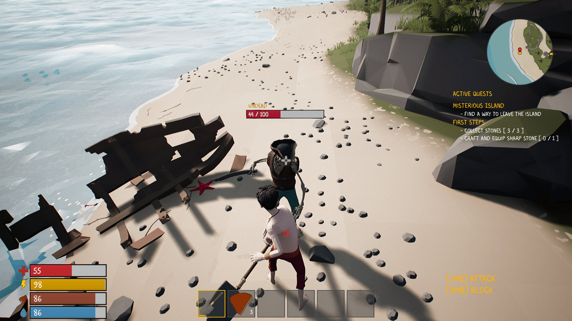 Lost on an island in the middle of the ocean, after a shipwreck you'll have to find a way to get off the island. It sounds easy but it's not... you'll have to survive!